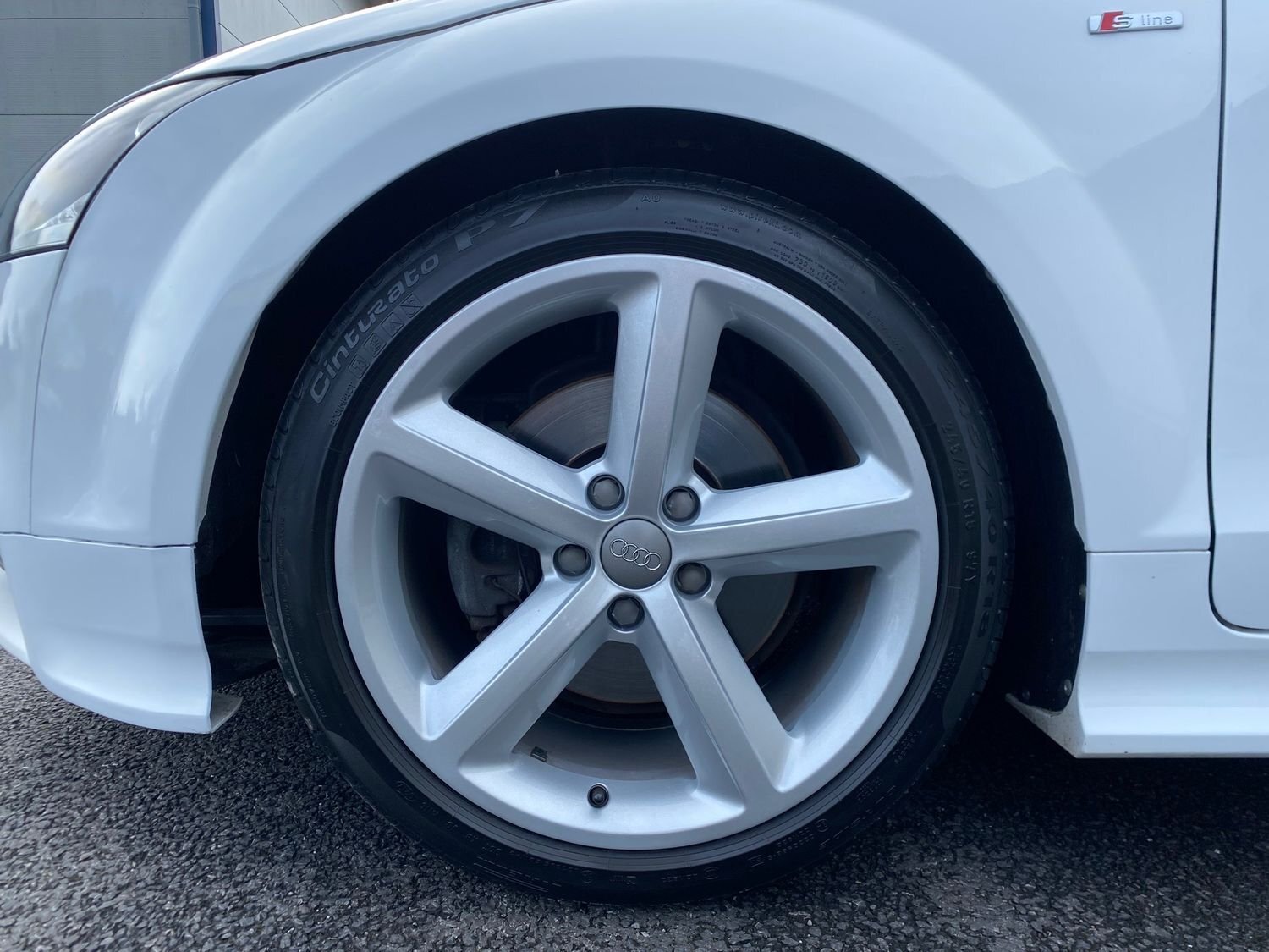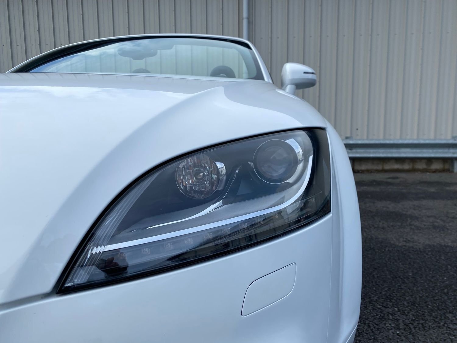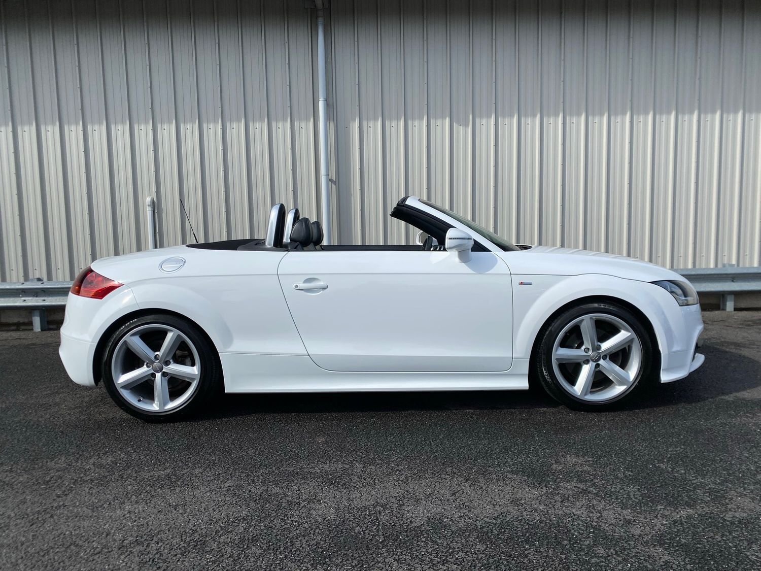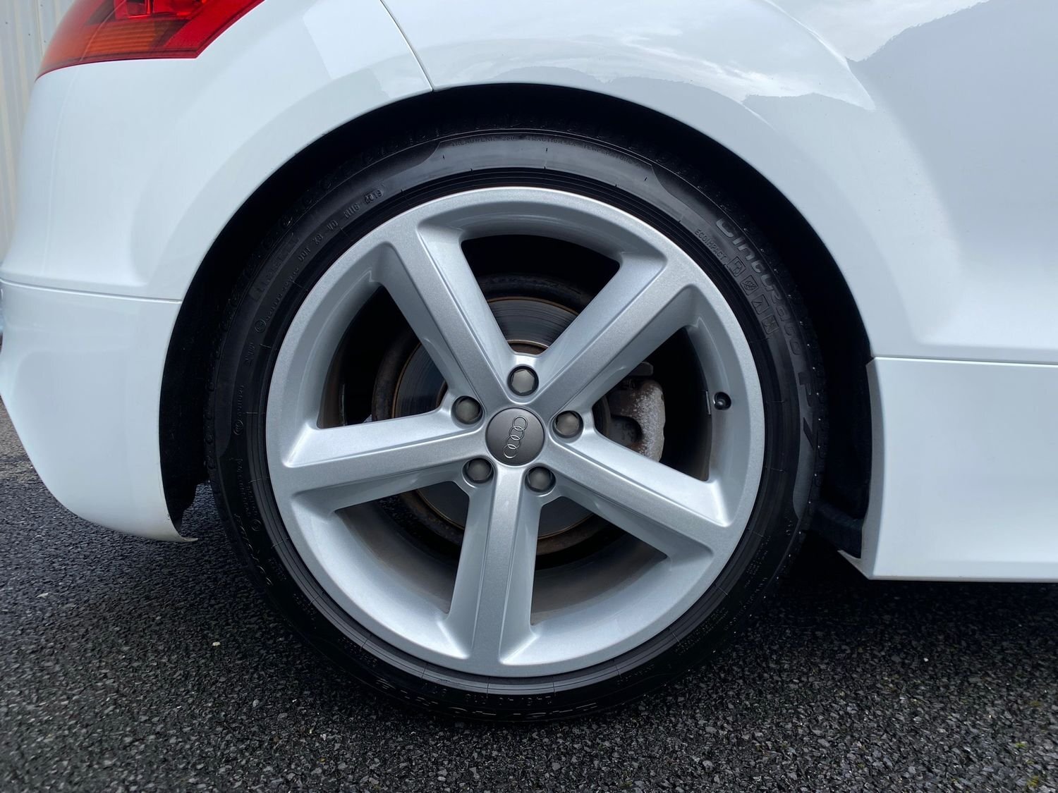 Hello and welcome to the sale of this fantastic Audi TT. This car has had just one lady owner form new and has covered 74k miles with supporting service history and will have a fresh service and MOT upon sale. It comes with two keys, original book packs and even the original bill of sale. This was not a cheap car when it was new, and was very well specified with lots of expensive factory options including sat na, electrically adjustable and heated full leather sports seats, electric folding mirrors, comfort pack, interior lighting pack, exterior black pack and much more. The striking white exterior still looks very fresh with just a few very light marks as you would expect. The electric folding soft top is also in a superb clean condition. I have just had the 18" alloy wheels professionally refurbished and they are well shod with four Pirelli tyres. The interior is excellent condition with minimal wear. The 1.8 turbo petrol engine is quiet and responsive, the s-tronic auto gearbox is smooth, and you can use the steering wheel paddles for a more sporting drive. The car starts, runs and drives very well indeed with no apparent faults. To sum up this is a very attractive and very well specified example of this iconic roadster and I am sure the new owner will be very pleased.