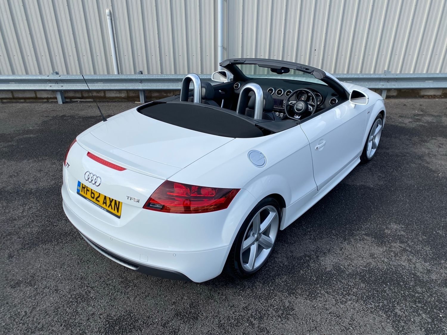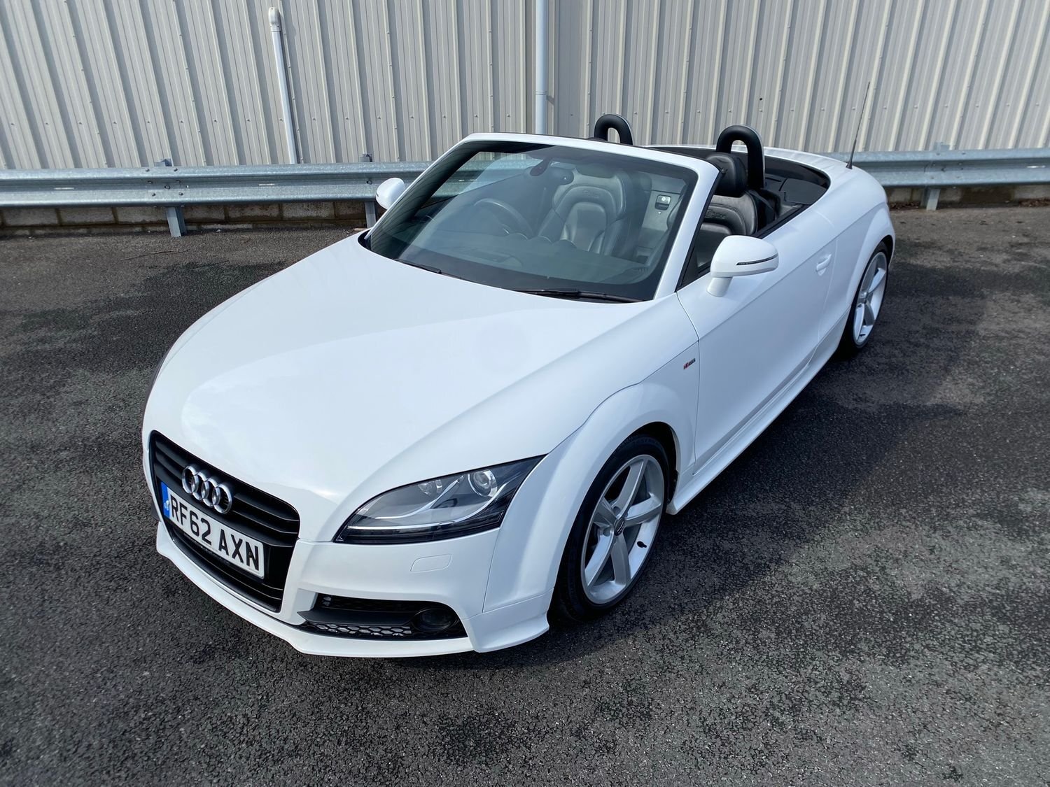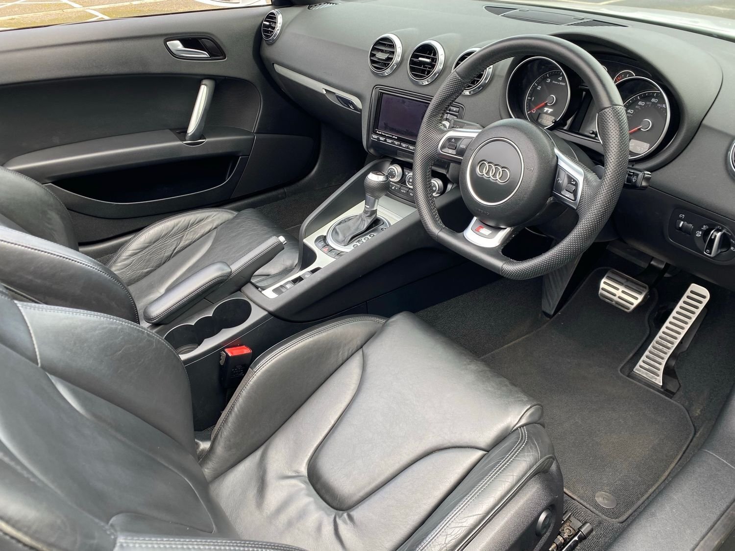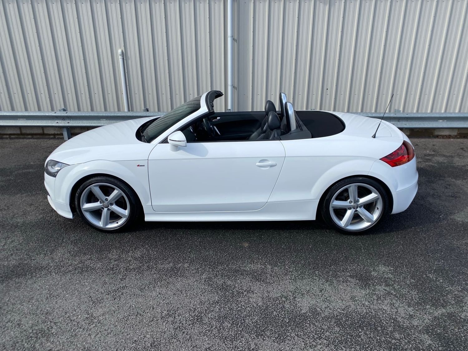 Hello and welcome to the sale of this fantastic Audi TT. This car has had just one lady owner form new and has covered 74k miles with supporting service history and will have a fresh service and MOT upon sale. It comes with two keys, original book packs and even the original bill of sale. This was not a cheap car when it was new, and was very well specified with lots of expensive factory options including sat na, electrically adjustable and heated full leather sports seats, electric folding mirrors, comfort pack, interior lighting pack, exterior black pack and much more. The striking white exterior still looks very fresh with just a few very light marks as you would expect. The electric folding soft top is also in a superb clean condition. I have just had the 18" alloy wheels professionally refurbished and they are well shod with four Pirelli tyres. The interior is excellent condition with minimal wear. The 1.8 turbo petrol engine is quiet and responsive, the s-tronic auto gearbox is smooth, and you can use the steering wheel paddles for a more sporting drive. The car starts, runs and drives very well indeed with no apparent faults. To sum up this is a very attractive and very well specified example of this iconic roadster and I am sure the new owner will be very pleased.