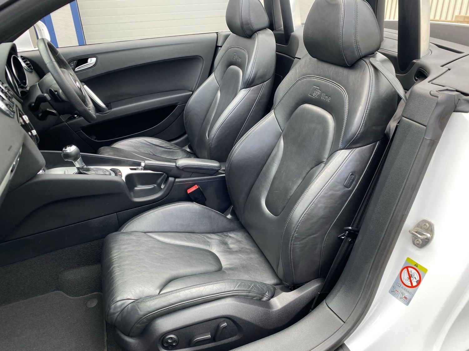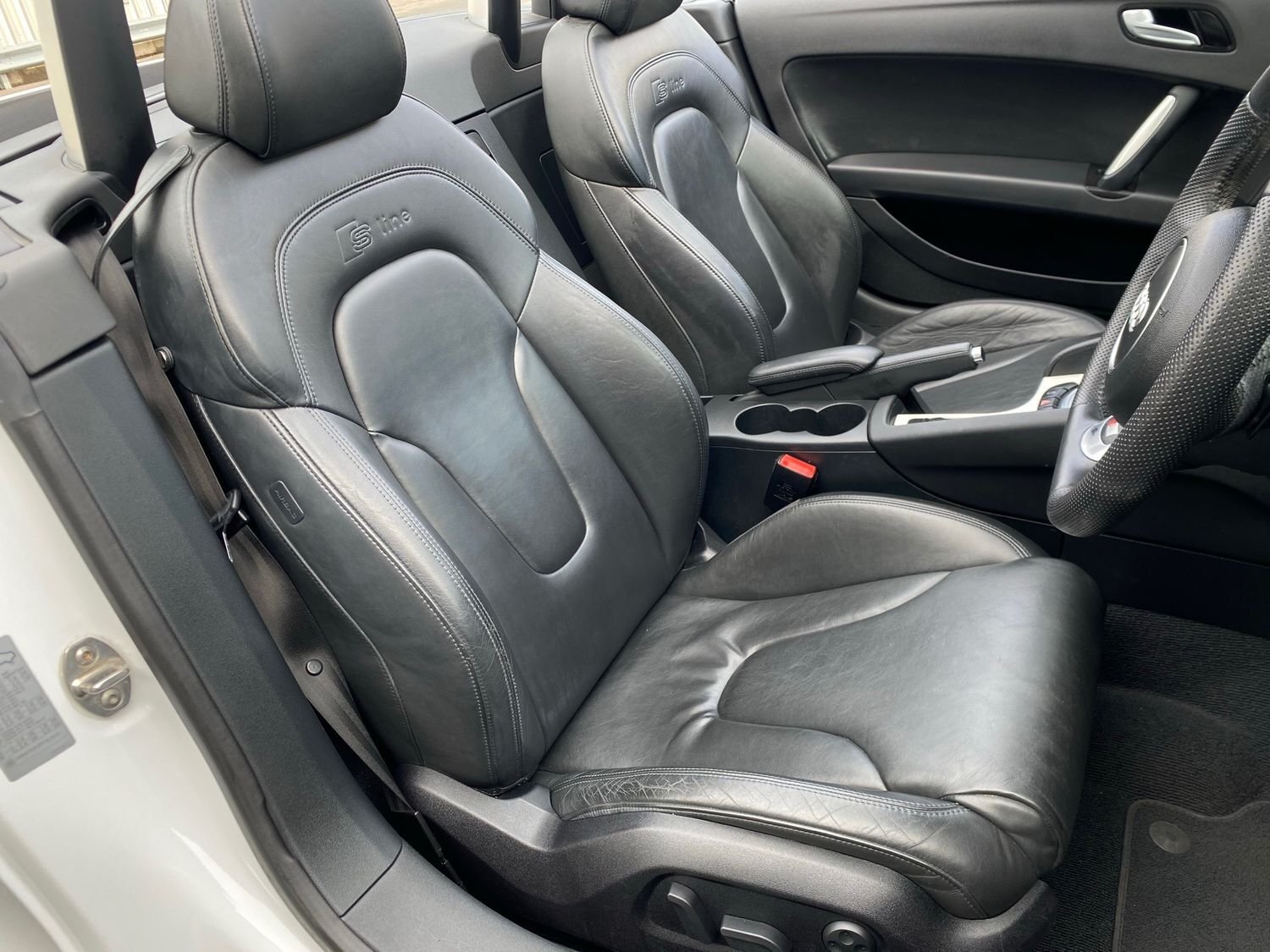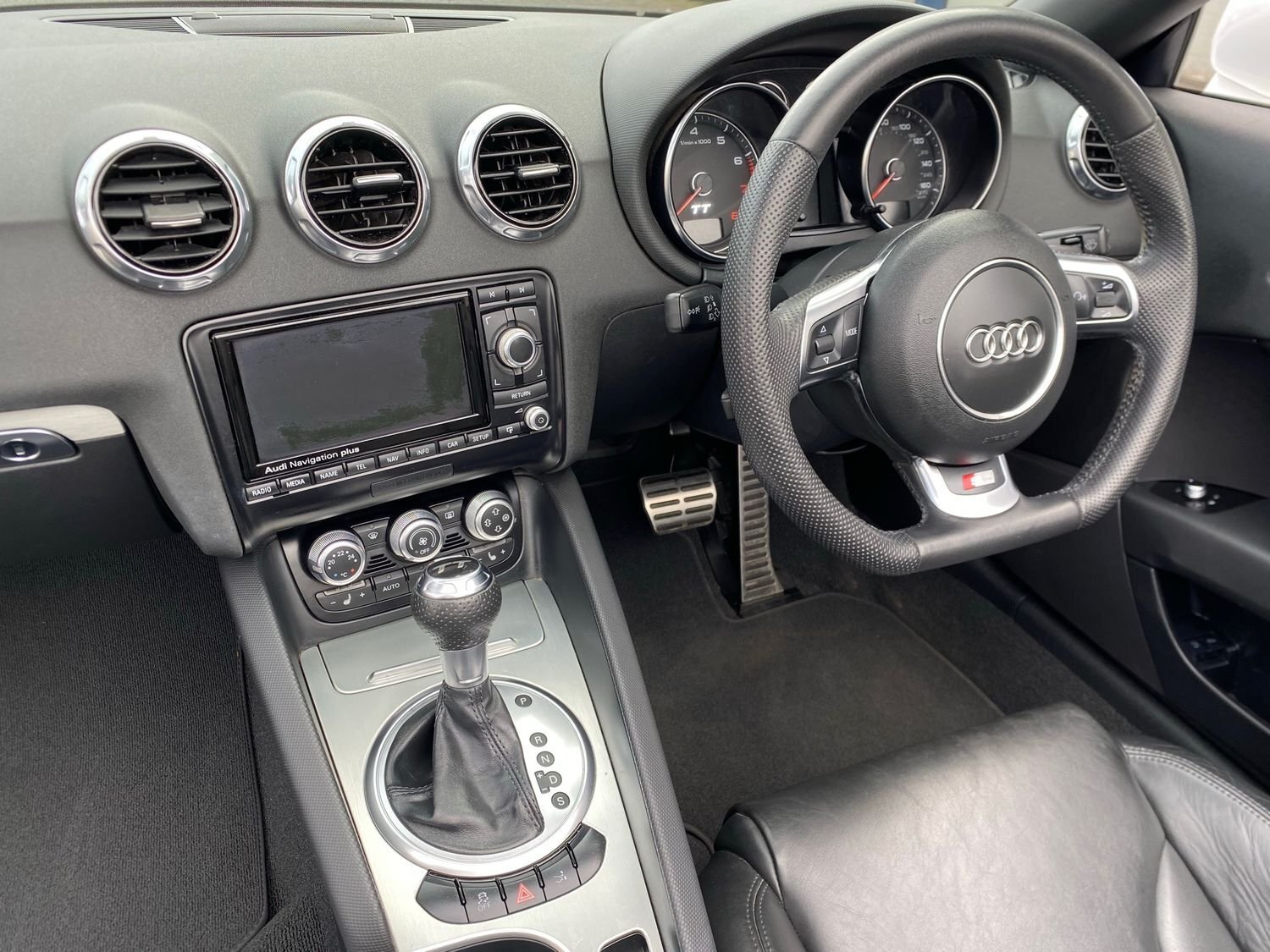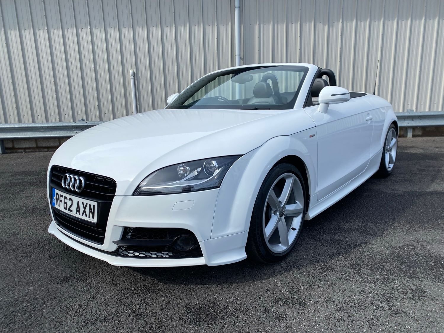 Hello and welcome to the sale of this fantastic Audi TT. This car has had just one lady owner form new and has covered 74k miles with supporting service history and will have a fresh service and MOT upon sale. It comes with two keys, original book packs and even the original bill of sale. This was not a cheap car when it was new, and was very well specified with lots of expensive factory options including sat na, electrically adjustable and heated full leather sports seats, electric folding mirrors, comfort pack, interior lighting pack, exterior black pack and much more. The striking white exterior still looks very fresh with just a few very light marks as you would expect. The electric folding soft top is also in a superb clean condition. I have just had the 18" alloy wheels professionally refurbished and they are well shod with four Pirelli tyres. The interior is excellent condition with minimal wear. The 1.8 turbo petrol engine is quiet and responsive, the s-tronic auto gearbox is smooth, and you can use the steering wheel paddles for a more sporting drive. The car starts, runs and drives very well indeed with no apparent faults. To sum up this is a very attractive and very well specified example of this iconic roadster and I am sure the new owner will be very pleased.