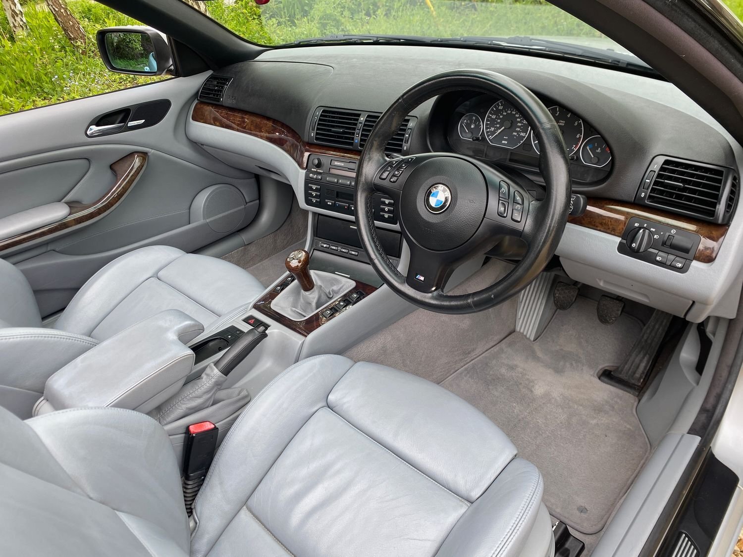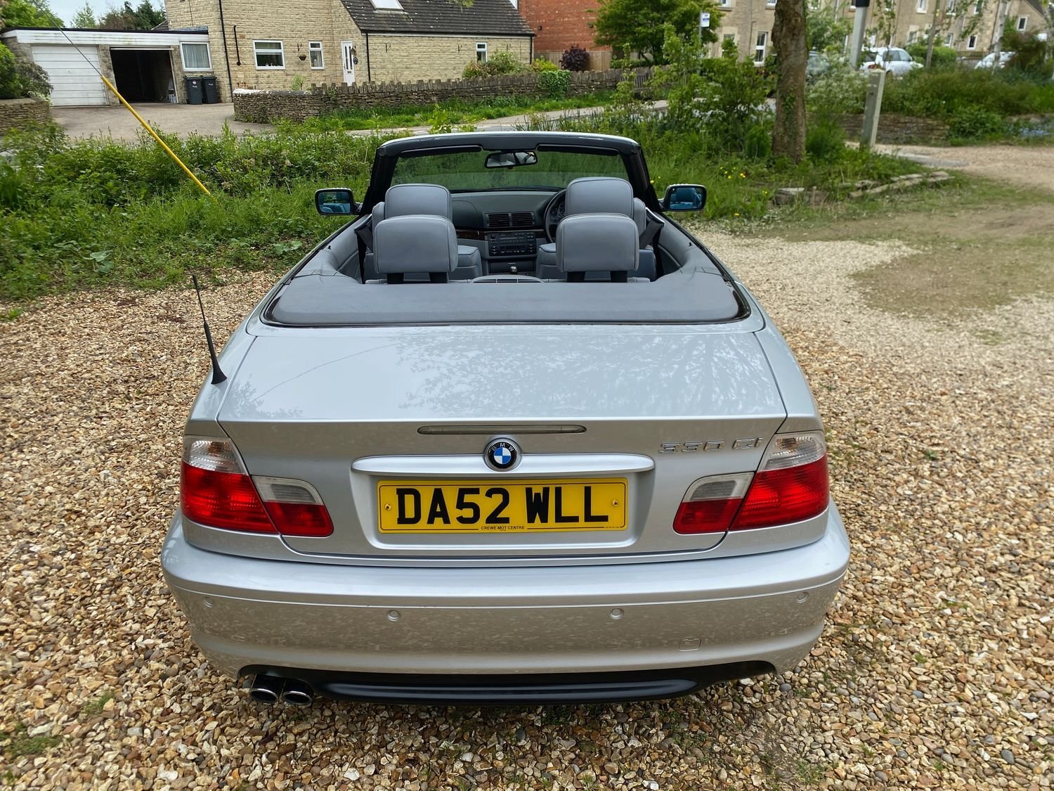 Hello and welcome to the sale of this stunning 330ci. This very special example was originally a BMW dealer demonstrator, with just one subsequent lady owner from new. It has covered just 50k miles with a comprehensive history file and will have a fresh service upon sale. The exterior is in excellent condition for the age with just a few tiny marks here and there but nothing like you might expect. All the arches are in great condition with none of the common rust issues often associated with the E46 models. The grey leather sports interior is also in lovely order with minimal wear. As often found with demonstrators, this car has been equipped with many additional factory options, including but not limited to heated electrically operated sports seats, bi-xenon headlamps, Harmon Kardon hi-fi, 6 disc CD changer, gloss shadow line trim, headlight washers, light & rain sensors, polished myrtle wood trim and much more. The contrasting blue electrically operated soft top is in excellent condition with no rips or tears. The silky smooth 3.0 straight six engine purrs as it should with no knocks or rattles and puts its power down well through the desirable 5 speed manual gearbox. On the road the car handles positively and pulls up square under braking. To sum up this a unique opportunity to acquire a very high spec, low mileage, low owner, manual gearbox example of what is already becoming a very collectible BMW and I am sure the new owner will be very pleased.