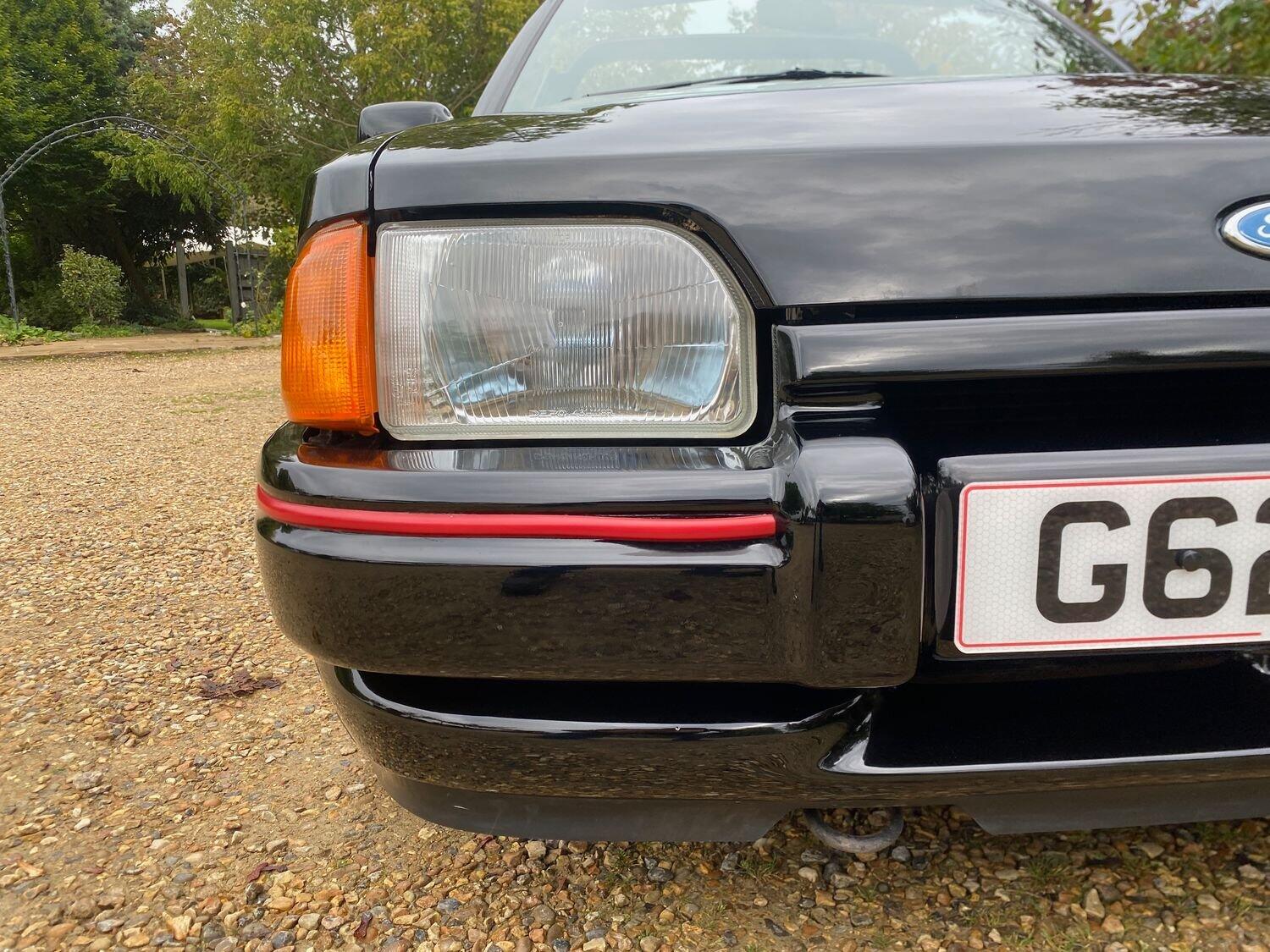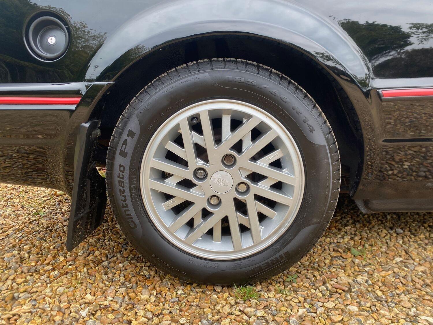 Hello and welcome to the sale of this stunning Ford Escort. Having covered just 66k miles with supporting paperwork to warrant the mileage, this car was registered new in the midlands area and has led a very easy life and clearly been very well cared for. The gleaming black paintwork is in fantastic condition with an incredibly deep shine, and has clearly had a high quality respray in recent years. However, this has clearly been done to simply keep the car looking fresh, as once under scrutiny there are no signs of accident damage or rust. In fact, there is zero indication that the car has ever been welded, with sills, arches, battery tray and all the other usual problem areas all remaining in factory condition. The alloy wheels are in excellent condition, and well shod with matching premium Pirelli tyres all round. All the glass and trims are in great condition, and under the bonnet is also extremely clean with nothing scruffy or out of place. Whilst in my possession I have treated the car to new rubber side mouldings, new Ford blue oval badges front and rear, and period dealer plates and stickers which really add detail. The simple, manually operated black vinyl roof is believed to be the original, with a few tiny marks and signs of age here and there but perfectly functional and entirely presentable. It has also had a good check over underneath, with nothing more than a new coolant bottle, a drive shaft oil seal and fresh brake fluid required and duly attended to. The grey cloth interior trim is in great order, clean and dry with no rips or tears to the seats and a neat and tidy dashboard with no damage or cracks. A fully functioning original Ford radio cassette is still present, along with a working electric aerial. The CVH 1.6 injection engine fires up straight away, and idles nicely and quietly, with no smoke and producing good power through the rev range. The 5 speed manual gearbox is slick in operation with a good clutch. On the road it handles very tight even for a cabrio of this age, with minimal wobbles, squeaks or knocks. It handles the corners well, and pulls up straight under braking. To sum up, this is an immediately useable, extremely well presented and very genuine unrestored, survivor example of this ever popular retro Ford, and I am sure the new owner will be as thrilled as we are with it! Part exchange considered, and nationwide delivery available.