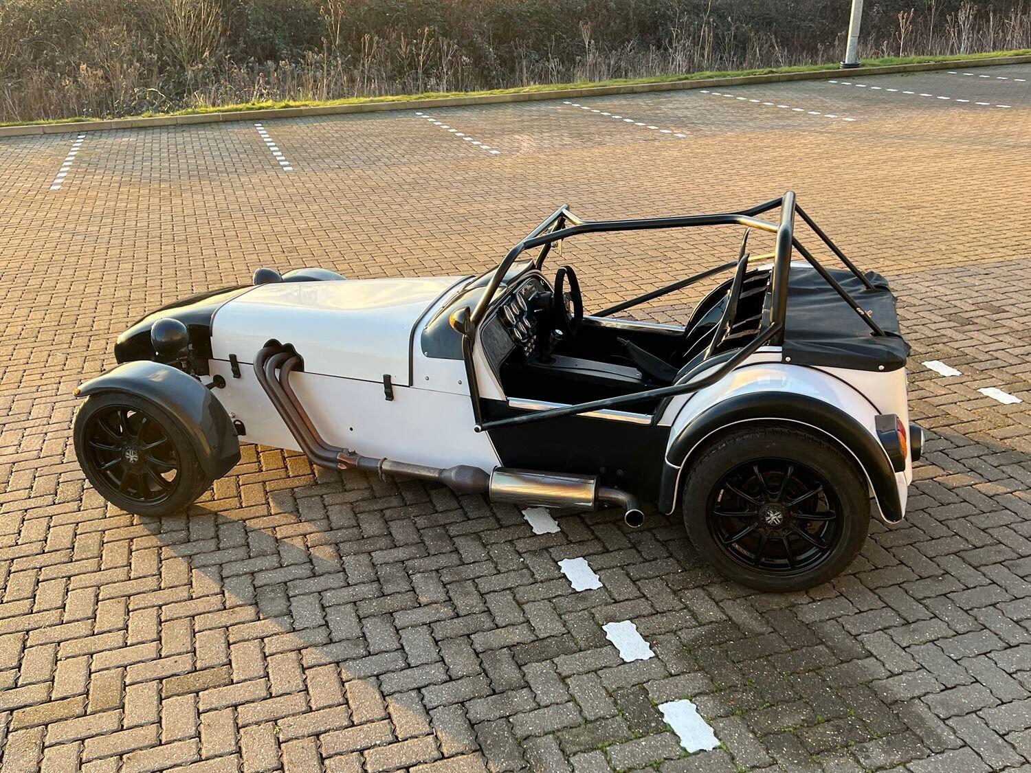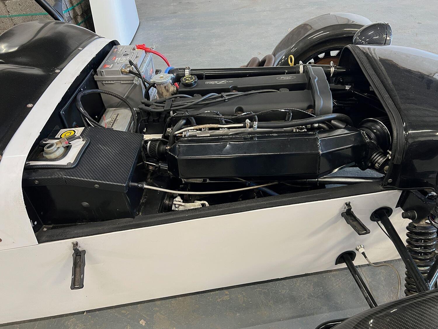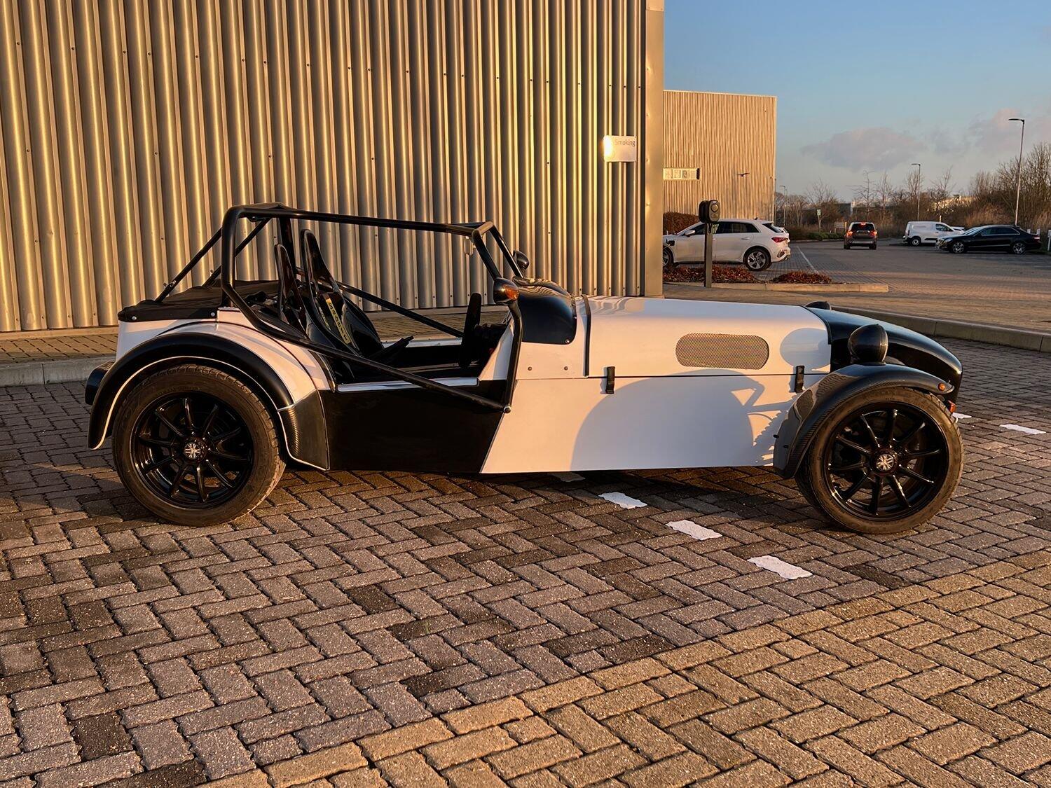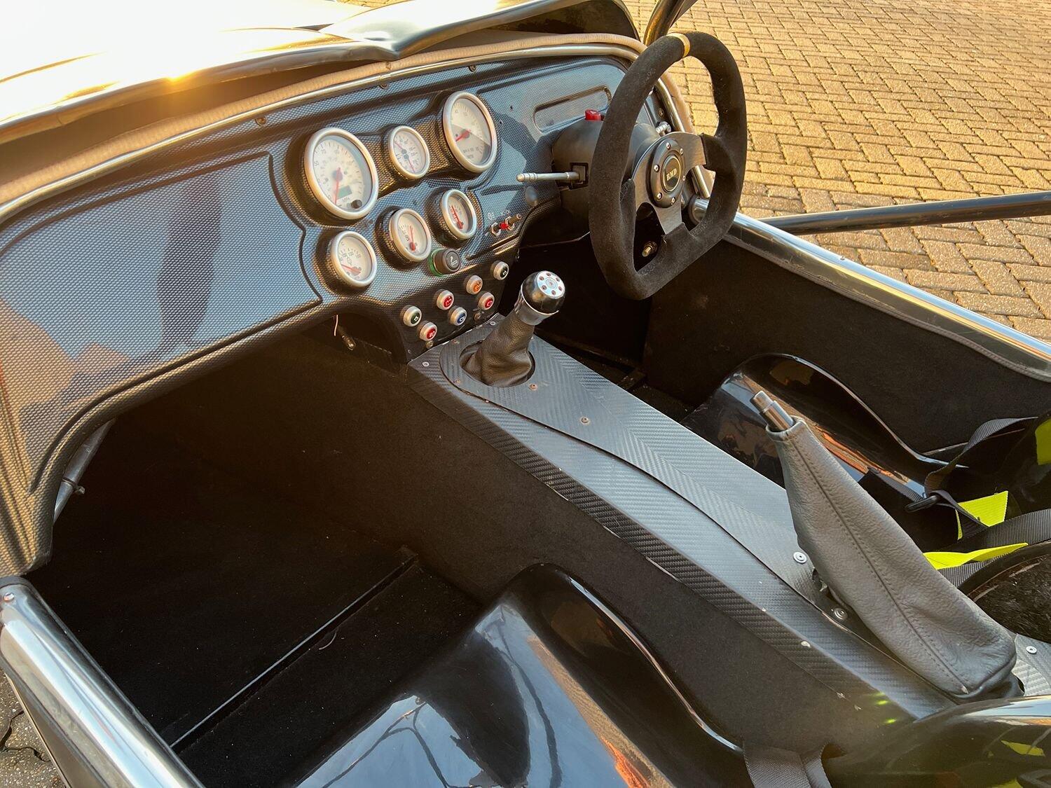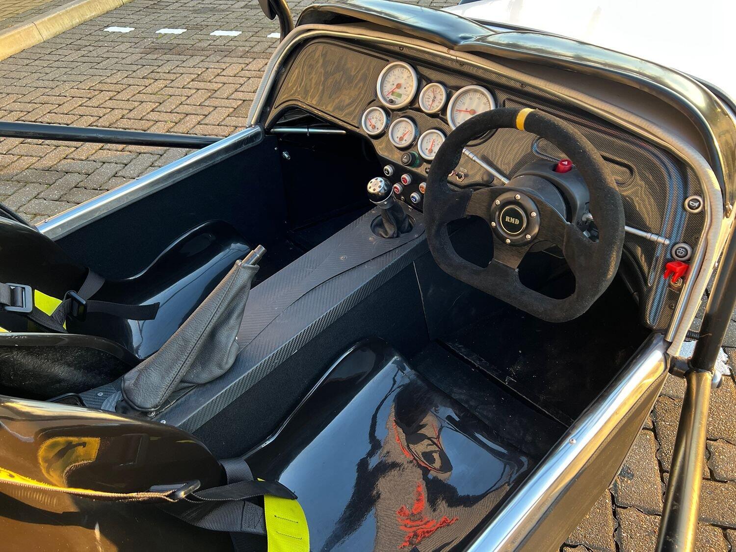 Hello and welcome to the sale of this superb kit car. Originally a Ford Cortina based 'Formula 27' kit car built and registered in 1994, the car has recently been completely transformed into a thoroughly modern looking Caterham style sports car. Every aspect has been totally overhauled, including the running gear, electricals, interior and bodywork, all to a very high standard. It is fitted with the well regarded 2.0 Ford Zetec engine (was told it was a new crate engine, it looks new, although no proof), controlled by an Emerald ECU, along with a 5 speed Ford Type 9 gearbox, and independent rear suspension. As you can imagine it offers very brisk performance! It features GAZ shocks all round, and it naturally handles very well, but the ride is very compliant and does not shake your fillings out! The lightweight black and white bodywork is in immaculate condition, and features some nice carbon fibre front wheel arches and other neat carbon look items like the lamps and mirrors. The Wolfrace alloy wheels are in virtually as new condition and are shod with quality Toyo tyres all round. It has a custom roll over cage along with lightweight GRP bucket seats and four point sabelt harnesses. The wind in the hair experience is completed by the lack of windscreen and the addition of an aero screen instead, which works well (perhaps in conjunction with sunglasses or goggles!) You could of course fit padded seats and a windscreen if you preferred. Please note there is no wet weather gear for the car so dress appropriately! It has a very nice alcantara flat bottom steering wheel, and a very attractive and modern styled carbon fibre style dashboard with quality gauges, switches and controls. It appears to have a nice quality wiring loom, with nothing out of place and all electrics working as they should. The car has covered just 1700 miles since it's restoration, and comes with a good history file with old MOTs to help trace it's history and various useful documents and diagrams relating to the build and components. It has been fully inspected in our workshop and will have a new MOT. To sum up, this is a very attractive, drivable and enjoyable example of the iconic Lotus 7 style British sports car, it represents enormous value for money and I am sure the new owner will be very pleased!