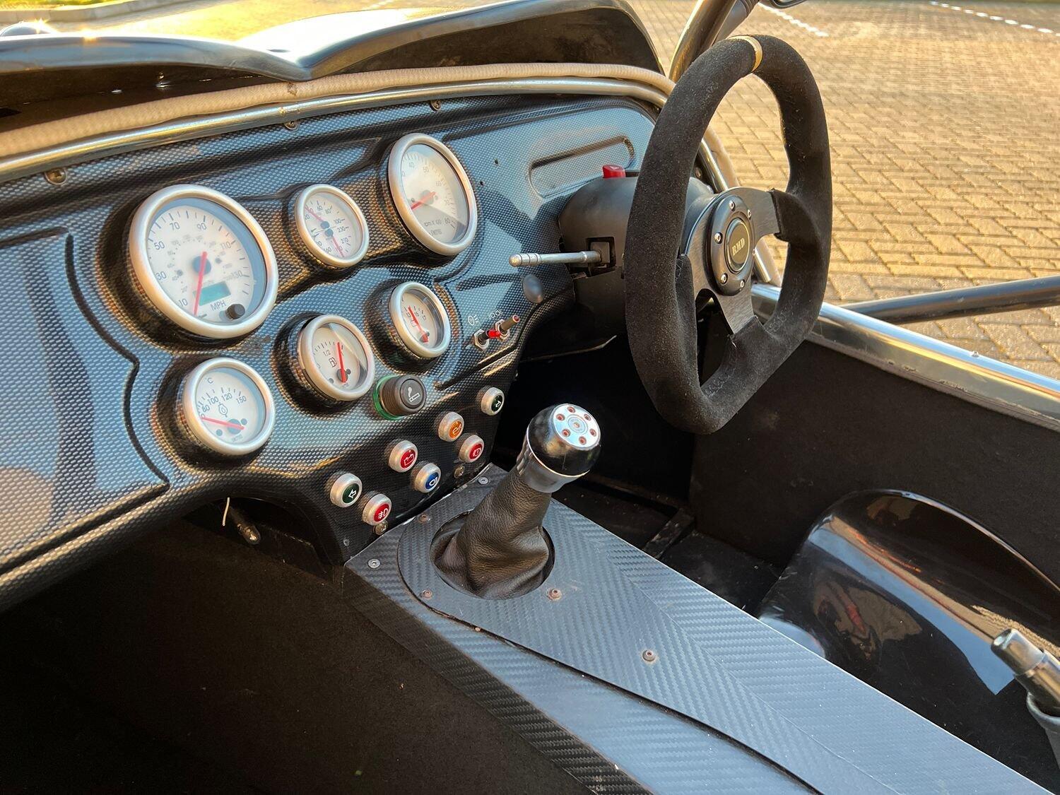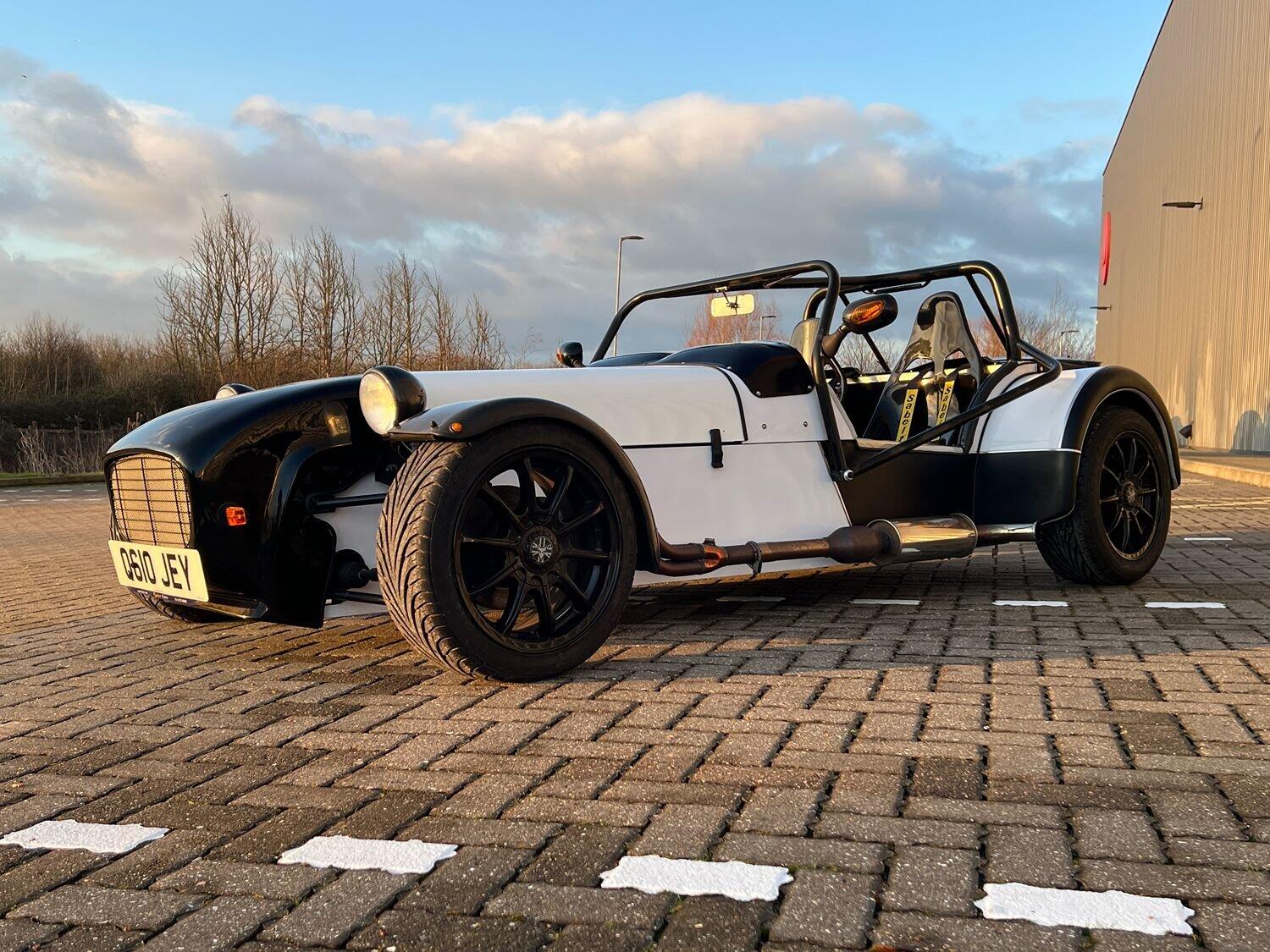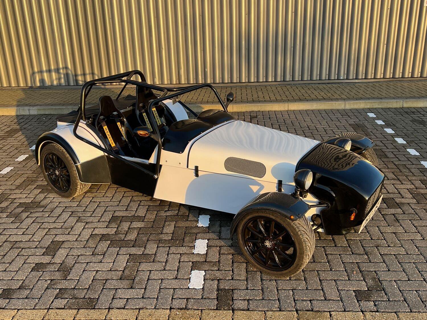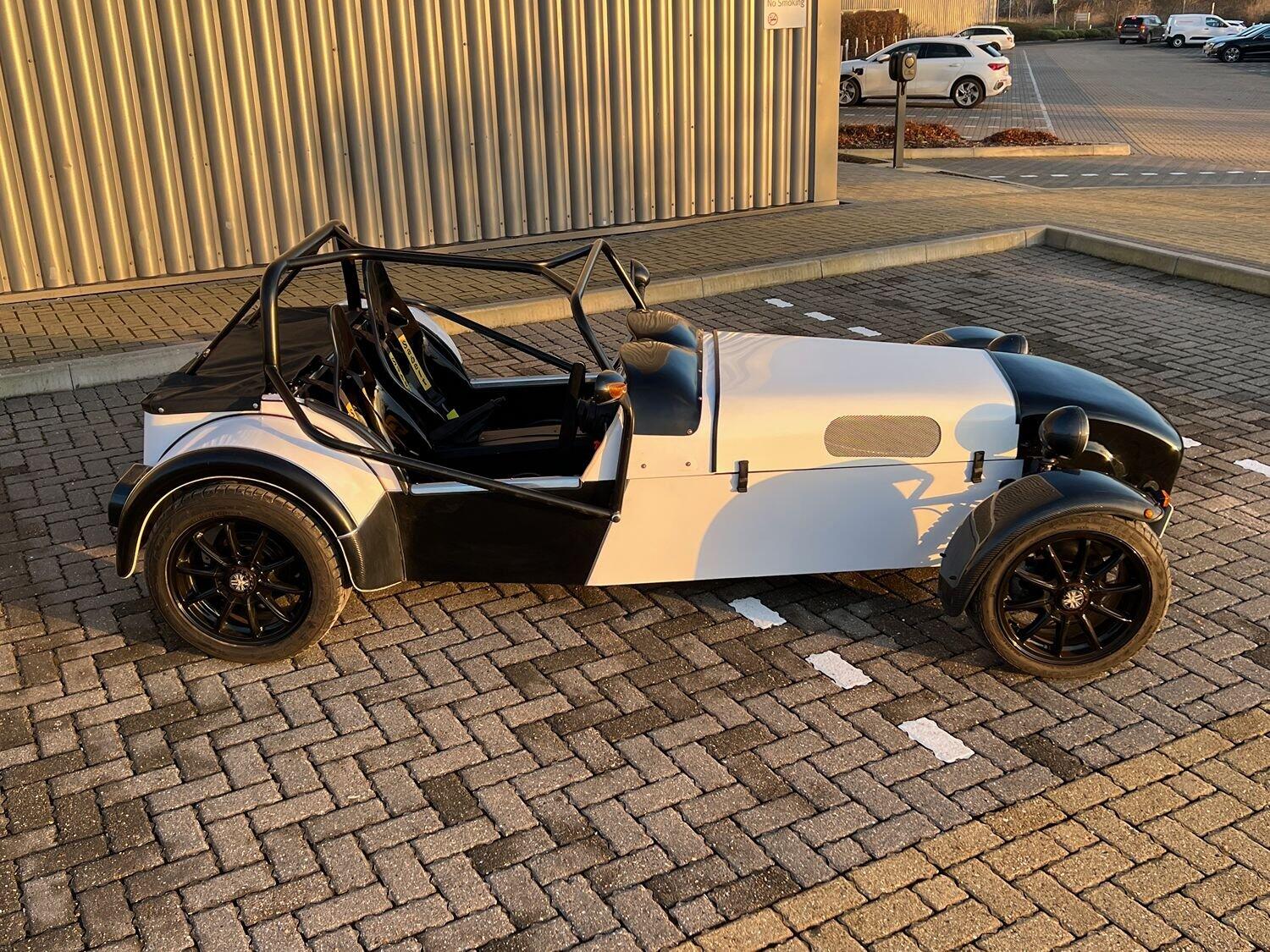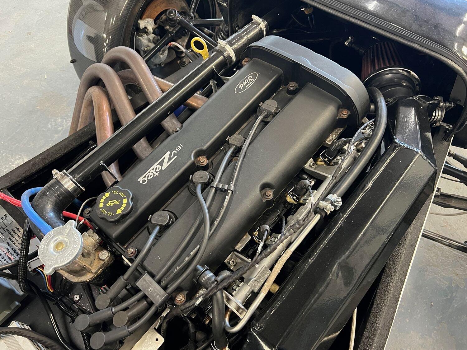 Hello and welcome to the sale of this superb kit car. Originally a Ford Cortina based 'Formula 27' kit car built and registered in 1994, the car has recently been completely transformed into a thoroughly modern looking Caterham style sports car. Every aspect has been totally overhauled, including the running gear, electricals, interior and bodywork, all to a very high standard. It is fitted with the well regarded 2.0 Ford Zetec engine (was told it was a new crate engine, it looks new, although no proof), controlled by an Emerald ECU, along with a 5 speed Ford Type 9 gearbox, and independent rear suspension. As you can imagine it offers very brisk performance! It features GAZ shocks all round, and it naturally handles very well, but the ride is very compliant and does not shake your fillings out! The lightweight black and white bodywork is in immaculate condition, and features some nice carbon fibre front wheel arches and other neat carbon look items like the lamps and mirrors. The Wolfrace alloy wheels are in virtually as new condition and are shod with quality Toyo tyres all round. It has a custom roll over cage along with lightweight GRP bucket seats and four point sabelt harnesses. The wind in the hair experience is completed by the lack of windscreen and the addition of an aero screen instead, which works well (perhaps in conjunction with sunglasses or goggles!) You could of course fit padded seats and a windscreen if you preferred. Please note there is no wet weather gear for the car so dress appropriately! It has a very nice alcantara flat bottom steering wheel, and a very attractive and modern styled carbon fibre style dashboard with quality gauges, switches and controls. It appears to have a nice quality wiring loom, with nothing out of place and all electrics working as they should. The car has covered just 1700 miles since it's restoration, and comes with a good history file with old MOTs to help trace it's history and various useful documents and diagrams relating to the build and components. It has been fully inspected in our workshop and will have a new MOT. To sum up, this is a very attractive, drivable and enjoyable example of the iconic Lotus 7 style British sports car, it represents enormous value for money and I am sure the new owner will be very pleased!