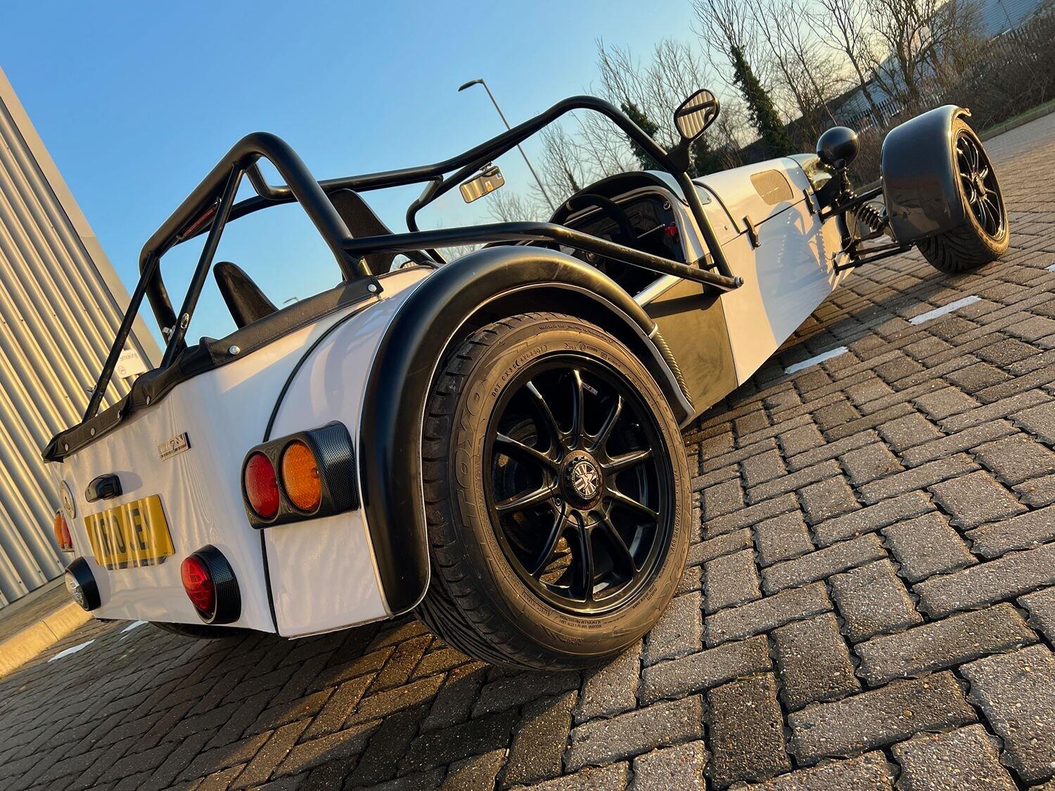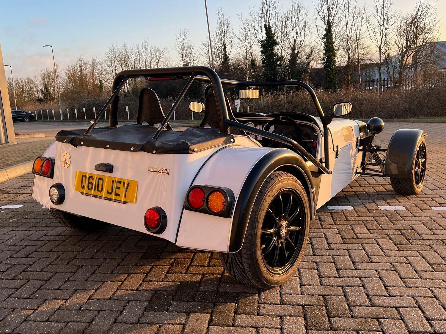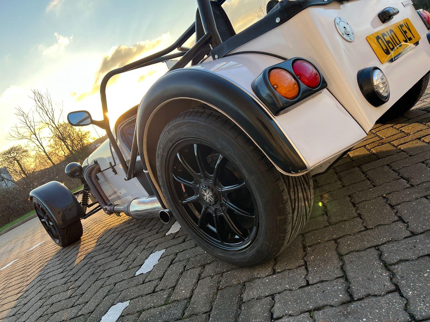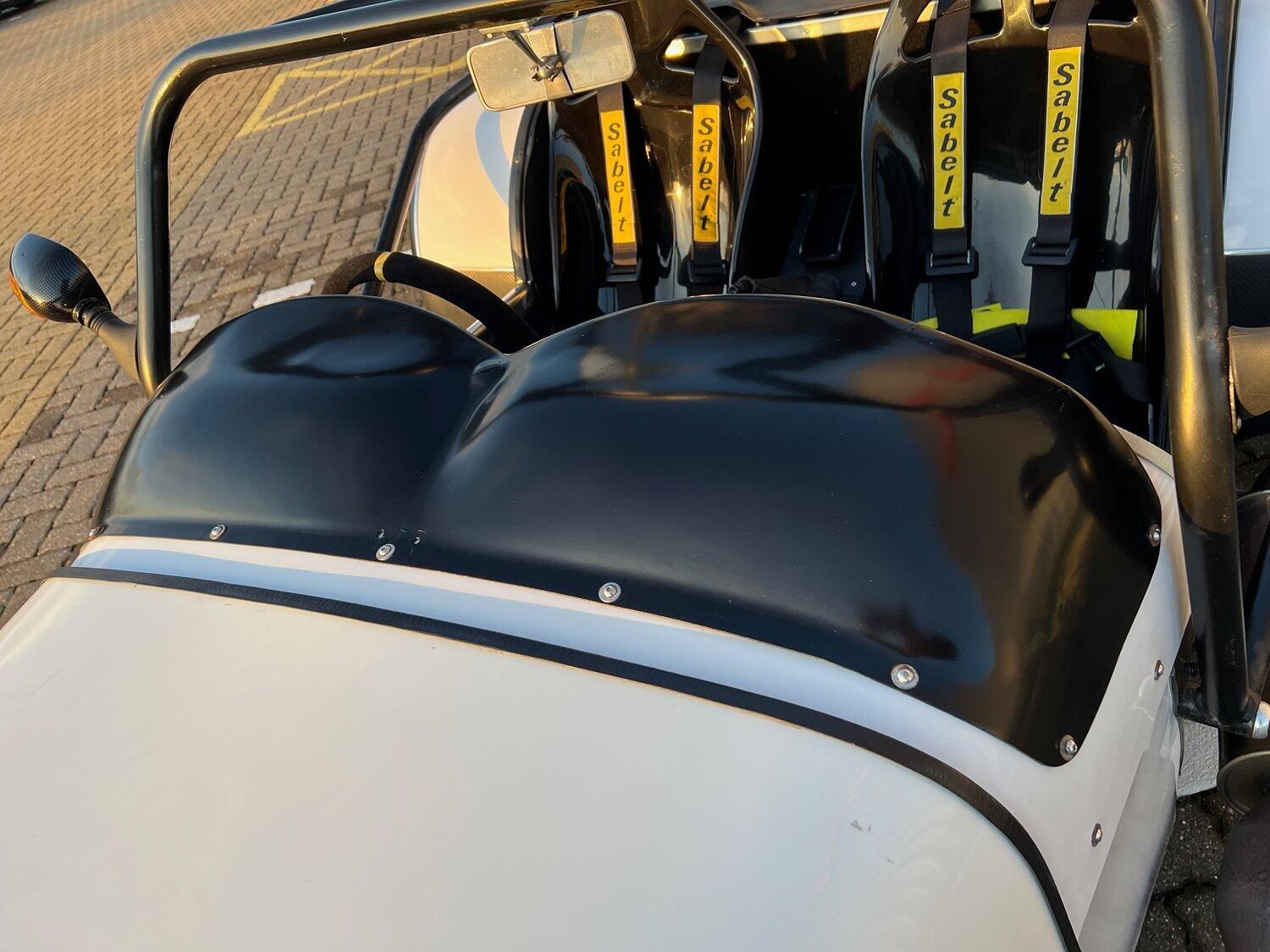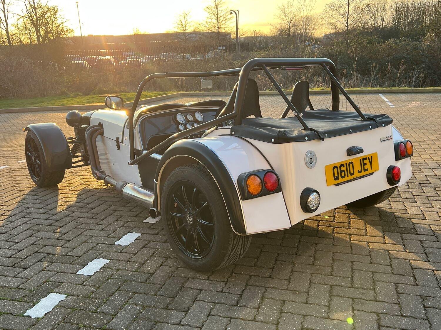 Hello and welcome to the sale of this superb kit car. Originally a Ford Cortina based 'Formula 27' kit car built and registered in 1994, the car has recently been completely transformed into a thoroughly modern looking Caterham style sports car. Every aspect has been totally overhauled, including the running gear, electricals, interior and bodywork, all to a very high standard. It is fitted with the well regarded 2.0 Ford Zetec engine (was told it was a new crate engine, it looks new, although no proof), controlled by an Emerald ECU, along with a 5 speed Ford Type 9 gearbox, and independent rear suspension. As you can imagine it offers very brisk performance! It features GAZ shocks all round, and it naturally handles very well, but the ride is very compliant and does not shake your fillings out! The lightweight black and white bodywork is in immaculate condition, and features some nice carbon fibre front wheel arches and other neat carbon look items like the lamps and mirrors. The Wolfrace alloy wheels are in virtually as new condition and are shod with quality Toyo tyres all round. It has a custom roll over cage along with lightweight GRP bucket seats and four point sabelt harnesses. The wind in the hair experience is completed by the lack of windscreen and the addition of an aero screen instead, which works well (perhaps in conjunction with sunglasses or goggles!) You could of course fit padded seats and a windscreen if you preferred. Please note there is no wet weather gear for the car so dress appropriately! It has a very nice alcantara flat bottom steering wheel, and a very attractive and modern styled carbon fibre style dashboard with quality gauges, switches and controls. It appears to have a nice quality wiring loom, with nothing out of place and all electrics working as they should. The car has covered just 1700 miles since it's restoration, and comes with a good history file with old MOTs to help trace it's history and various useful documents and diagrams relating to the build and components. It has been fully inspected in our workshop and will have a new MOT. To sum up, this is a very attractive, drivable and enjoyable example of the iconic Lotus 7 style British sports car, it represents enormous value for money and I am sure the new owner will be very pleased!