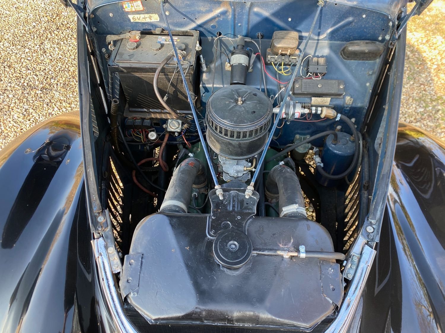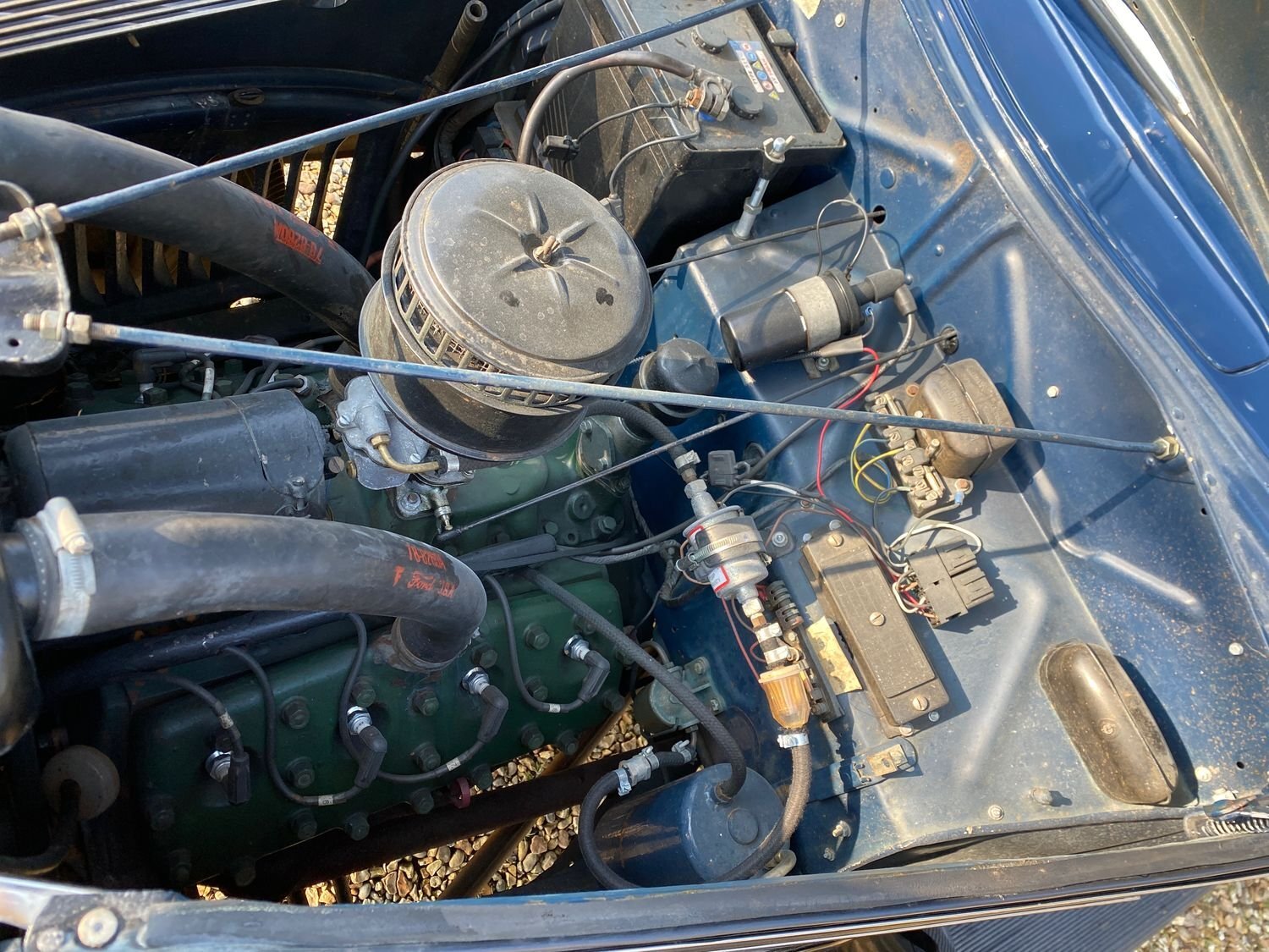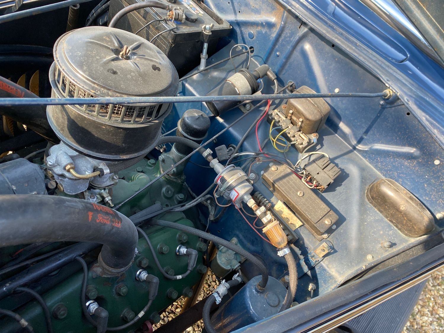 Hello and welcome to the sale of this stunning 1937 Ford. This fantastic survivor car has been carefully cared for and maintained in fully traceable enthusiast ownership over the last 10 decades. I find it quite incredible that cars like this exist! Interestingly although this is very much in the style of an American car, it is a very rare Dagenham UK home market RHD vehicle which has never left the country! The car comes with a large history file, together with extensive items of collectors literature appropriate to the model, including instruction manuals, spares parts book, service manual, chassis parts and accessories catalogue, approved service tools, spare parts list, parts catalogue, repair manual, service equipment, specialised service equipment, parts price list, parts and accessories bulletins from the 1930s, full lubrication chart in the original envelope, and letters from Ford dated 1960 to its then owner. All this makes fascinating reading in itself! It is fitted with the famous 3.4 flathead V8, along with the 3 speed manual gearbox, providing more than adequate performance for the age of the car, along with a fabulous noise! There are also loads of other quirky and interesting features such as the barrel operated ignition lock, suicide doors, and opening top hinged windscreen. Overall, the exterior is very smart and tidy, with a deep shine and no heavy damage. We have taken the opportunity to complete some light cosmetic improvements to make it show ready this season, and have also been over it mechanically. We have just re-cored the radiator and conducted a tune up at quite some expense to ensure the car is 'on the button' for instant enjoyment. The interior, seats, carpets and headlining are also very smart, having been re-trimmed approximately 20 years ago, and remaining very clean and tidy and now sporting an appropriate patina.