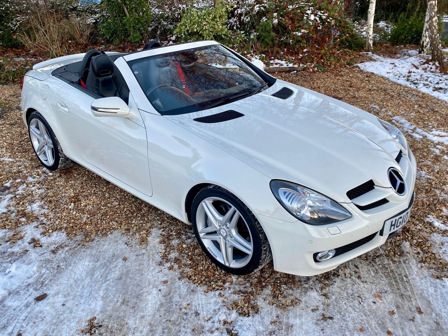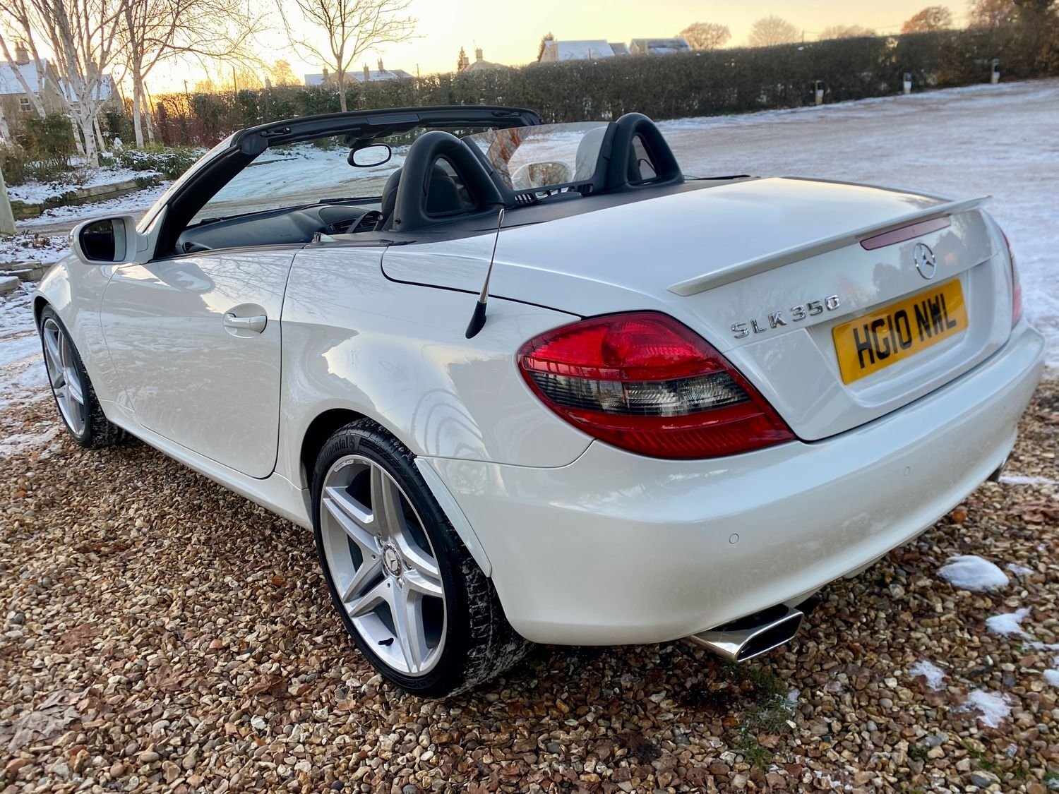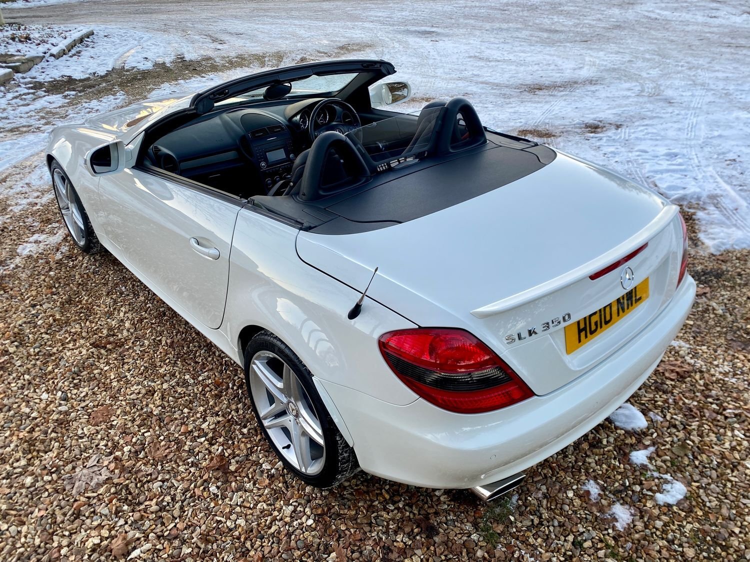 Hello and welcome to the sale of this superb SLK 350. It has covered just 78k miles with 2 owners from new, the last being a lady who kept and cherished it for over 10 years. It has a full MB main dealer and specialist service history, and has been serviced every single ear without fail regardless of mileage. It has a very high specification including heated seats and air scarves, Harmon Kardon sound system, parking sensors, electric memory seats, bi-xenon headlamps, and much more. These are extremely hard to find in white, which I think still looks modern and sharp. The exterior is in excellent order, with no heavy damage or signs of poor repair. I am just having the alloy wheels professionally refurbished and the car is sat on four matching Continental tyres. The electric folding hard top is also in great working order. The black leather interior is also in superb condition with minimal wear, and the red stitching and seat belts give it a modern sporting feel. The 3.5 V6 engine starts and runs perfectly. With over 300bhp, the 350 is a very underrated car in terms of performance, they are very quick indeed and make a fabulous noise under load! The auto gearbox is easy to use, and you can use the steering wheel paddles for a more sporting drive. The car performs perfectly on the road, it feels very solid with no knocks or bangs, and pulls up sharp and square under braking. To sum up, this is an exceptionally attractive, high spec, very well maintained example of a very fun tin top sports car, and I am sure the new owner will be very pleased!