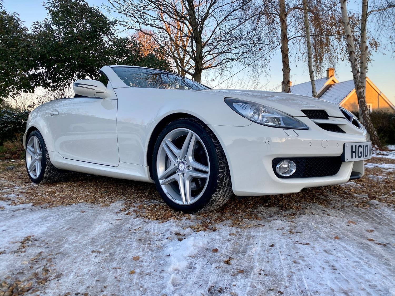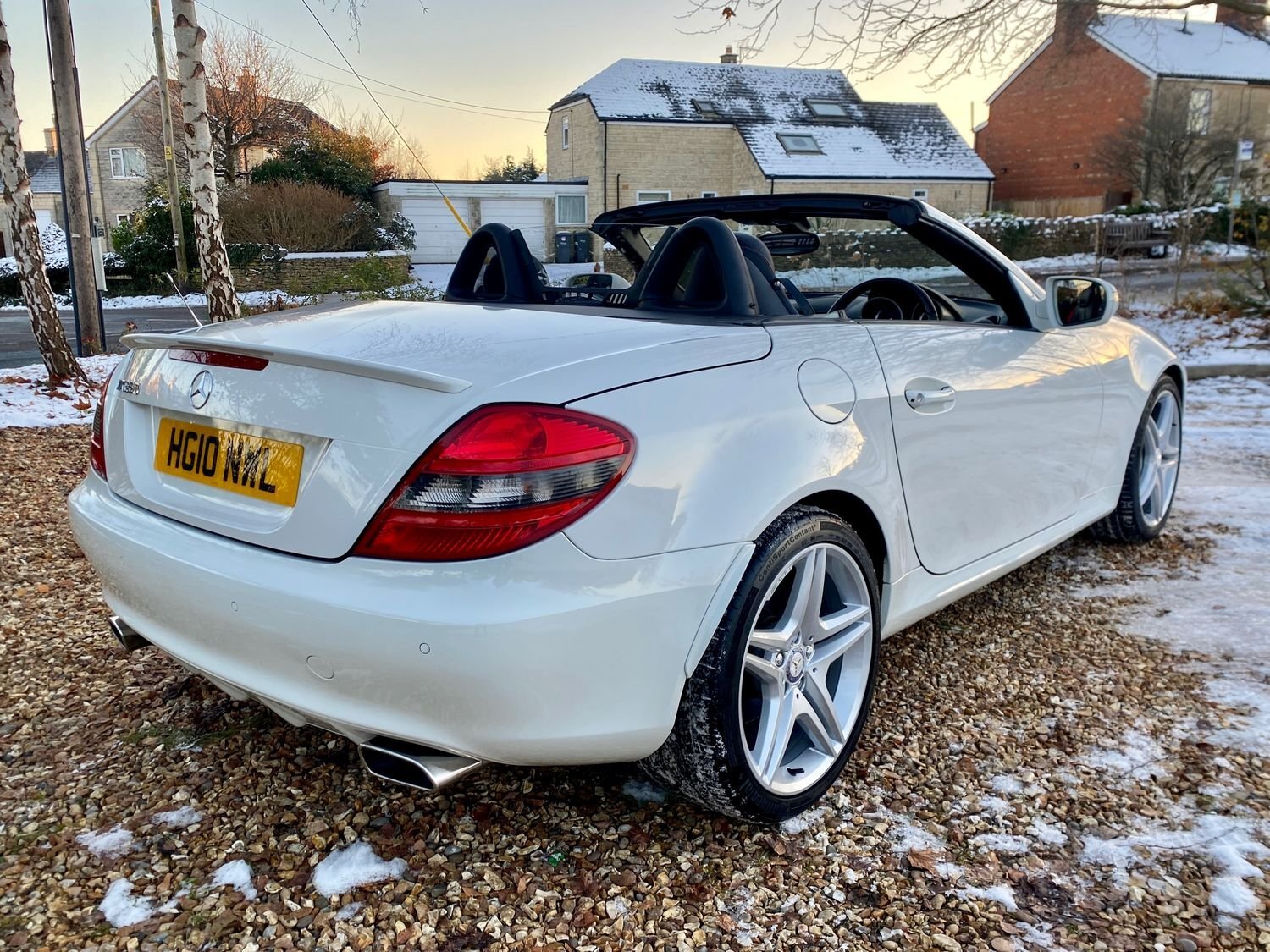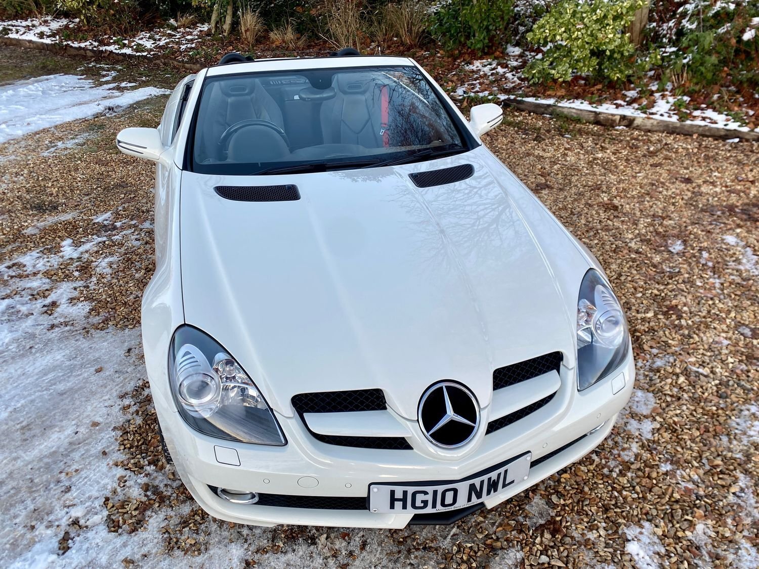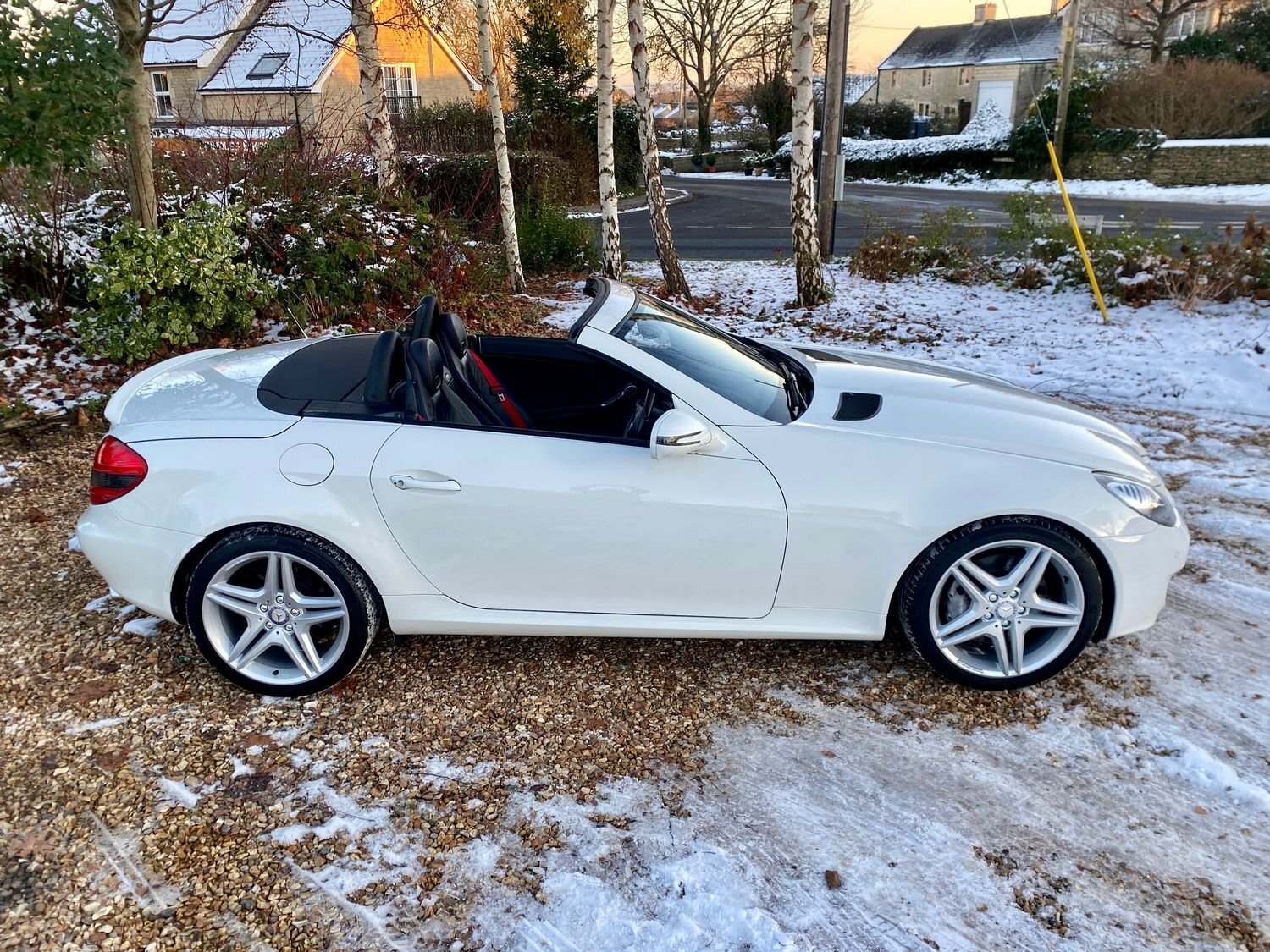 Hello and welcome to the sale of this superb SLK 350. It has covered just 78k miles with 2 owners from new, the last being a lady who kept and cherished it for over 10 years. It has a full MB main dealer and specialist service history, and has been serviced every single ear without fail regardless of mileage. It has a very high specification including heated seats and air scarves, Harmon Kardon sound system, parking sensors, electric memory seats, bi-xenon headlamps, and much more. These are extremely hard to find in white, which I think still looks modern and sharp. The exterior is in excellent order, with no heavy damage or signs of poor repair. I am just having the alloy wheels professionally refurbished and the car is sat on four matching Continental tyres. The electric folding hard top is also in great working order. The black leather interior is also in superb condition with minimal wear, and the red stitching and seat belts give it a modern sporting feel. The 3.5 V6 engine starts and runs perfectly. With over 300bhp, the 350 is a very underrated car in terms of performance, they are very quick indeed and make a fabulous noise under load! The auto gearbox is easy to use, and you can use the steering wheel paddles for a more sporting drive. The car performs perfectly on the road, it feels very solid with no knocks or bangs, and pulls up sharp and square under braking. To sum up, this is an exceptionally attractive, high spec, very well maintained example of a very fun tin top sports car, and I am sure the new owner will be very pleased!