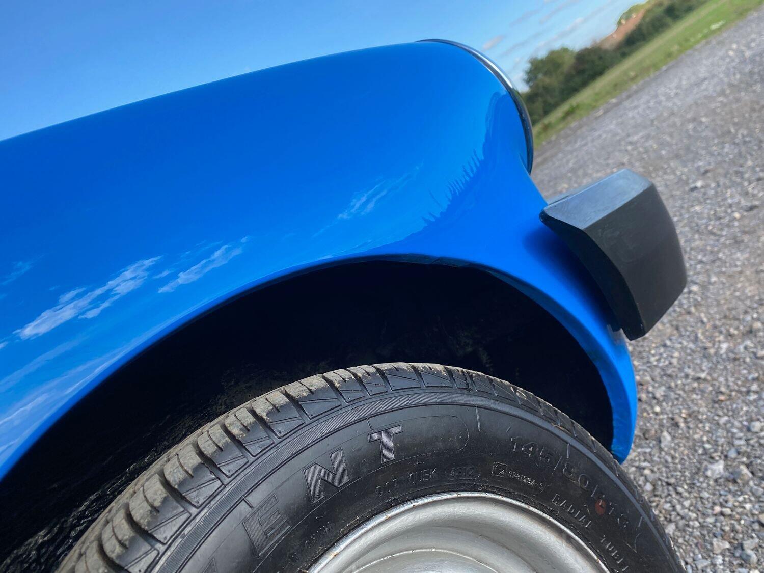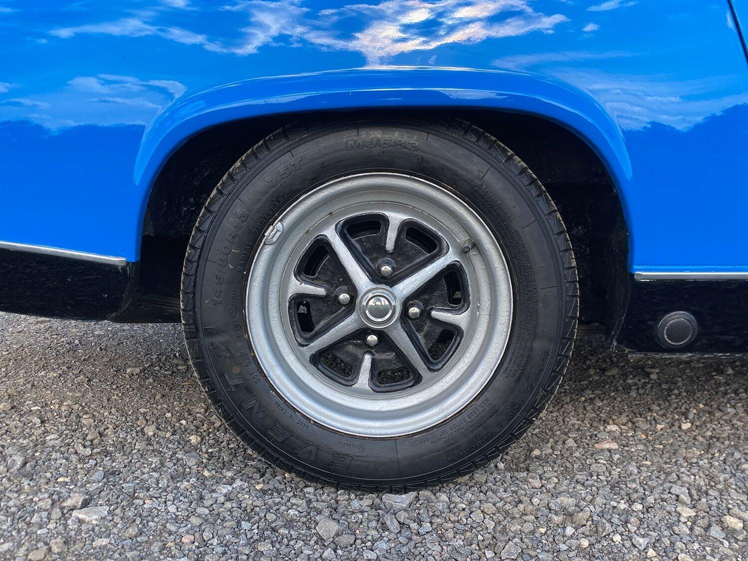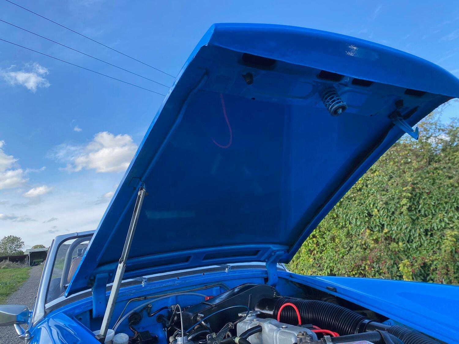 The bodywork and shell is also in fabulous order, with no corrosion to be found. According to the previous keeper's family and backed up by the paperwork, the car had some light refreshment including a respray around 20 years ago. It still looks great, very sharp and fresh without looking over restored, all finished in the original colour of the desirable Pageant Blue. All the bumpers, lights and trims are in decent order, and the panels are straight and true with no dings, dents or scrapes. The lights and glass even retain the period security etching of the registration number. The original rostyle wheels are fitted with good tyres and a roll over hoop is fitted for increased safety.