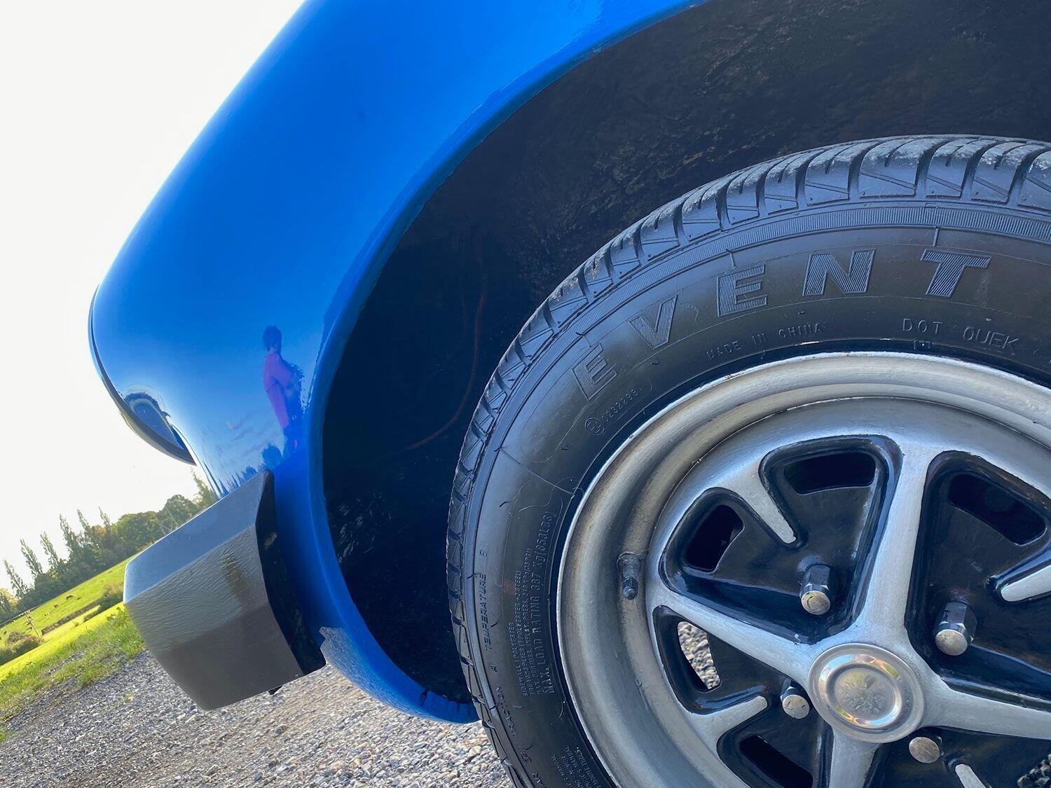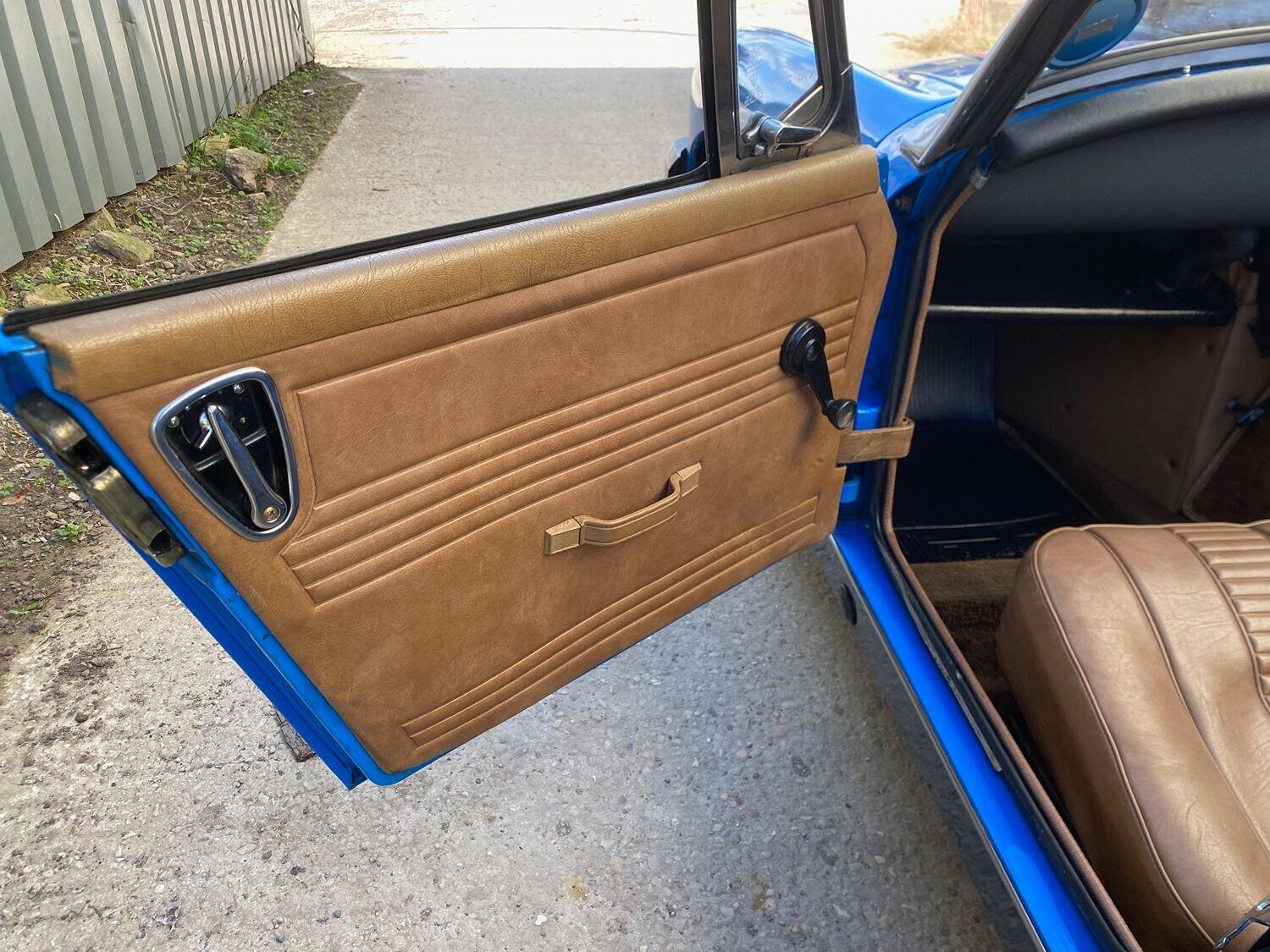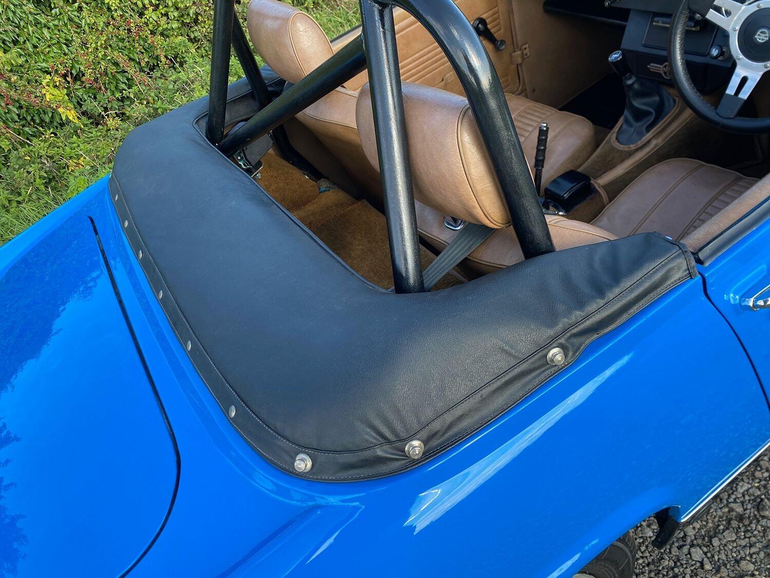 The bodywork and shell is also in fabulous order, with no corrosion to be found. According to the previous keeper's family and backed up by the paperwork, the car had some light refreshment including a respray around 20 years ago. It still looks great, very sharp and fresh without looking over restored, all finished in the original colour of the desirable Pageant Blue. All the bumpers, lights and trims are in decent order, and the panels are straight and true with no dings, dents or scrapes. The lights and glass even retain the period security etching of the registration number. The original rostyle wheels are fitted with good tyres and a roll over hoop is fitted for increased safety.
