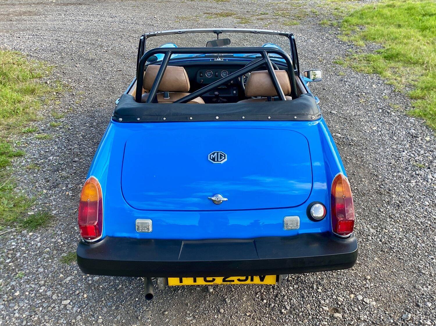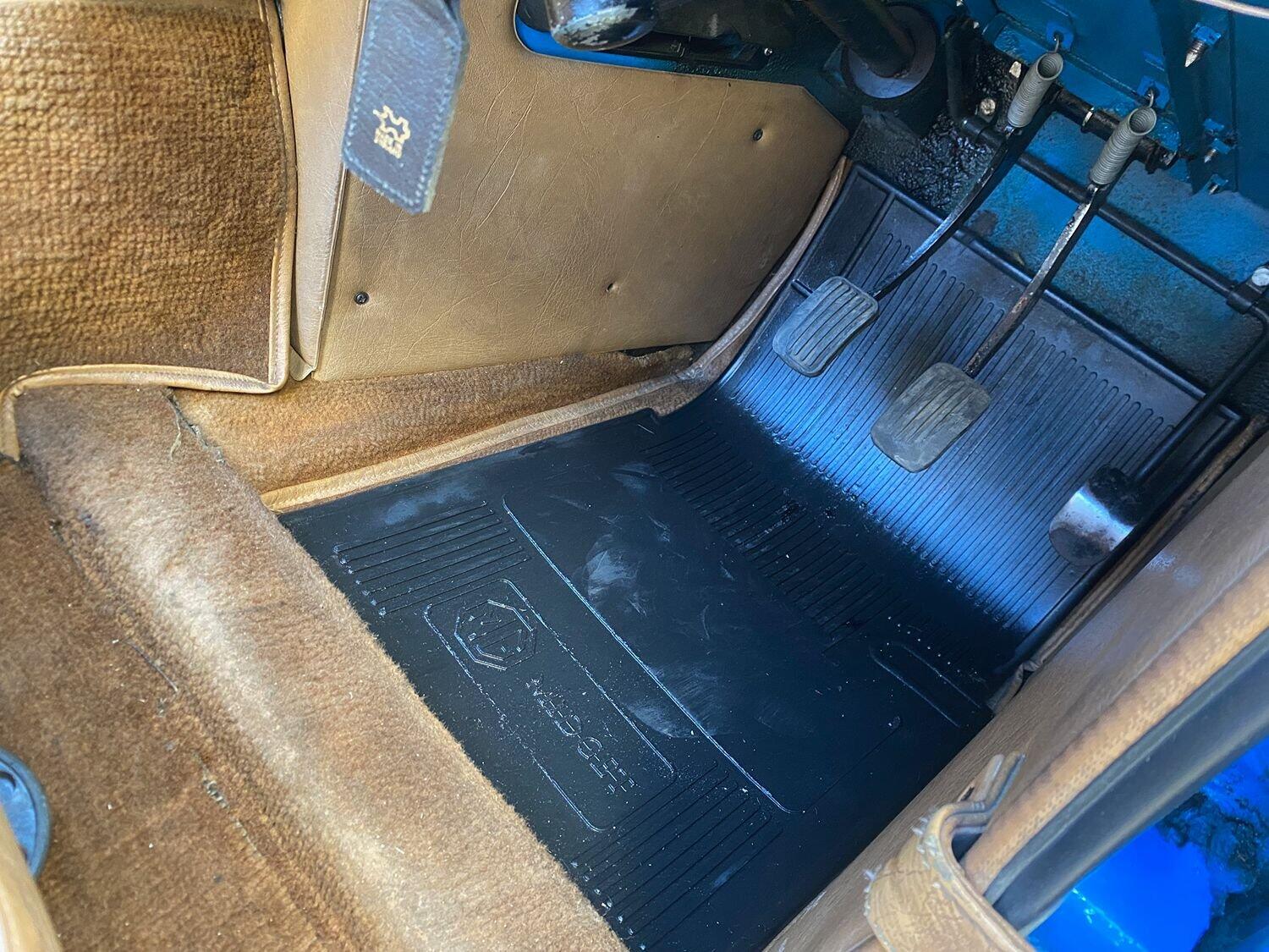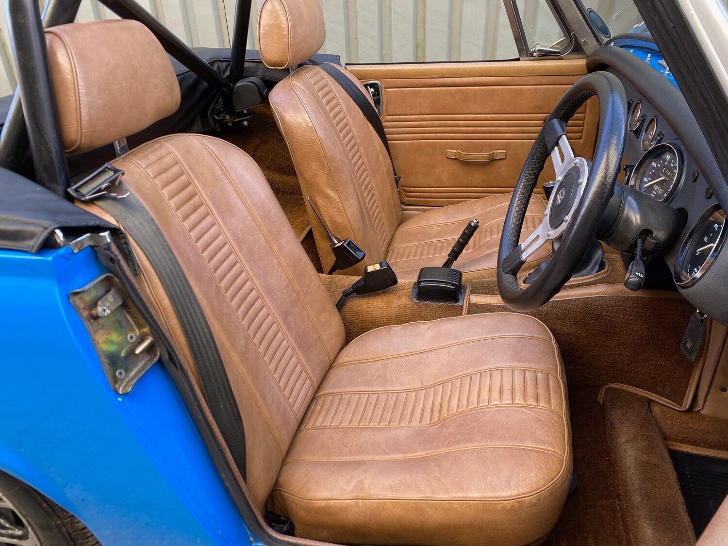 The gorgeous tan interior is the original, and in great condition. It comes with both the original steering wheel, and a tidy period small diameter Mountney sports steering wheel that looks cool and assists exit and entry! The simple folding vinyl roof is the original but still functional and presentable, and it has a very smart tonneau cover to keep everything neat on those drier roof down days.