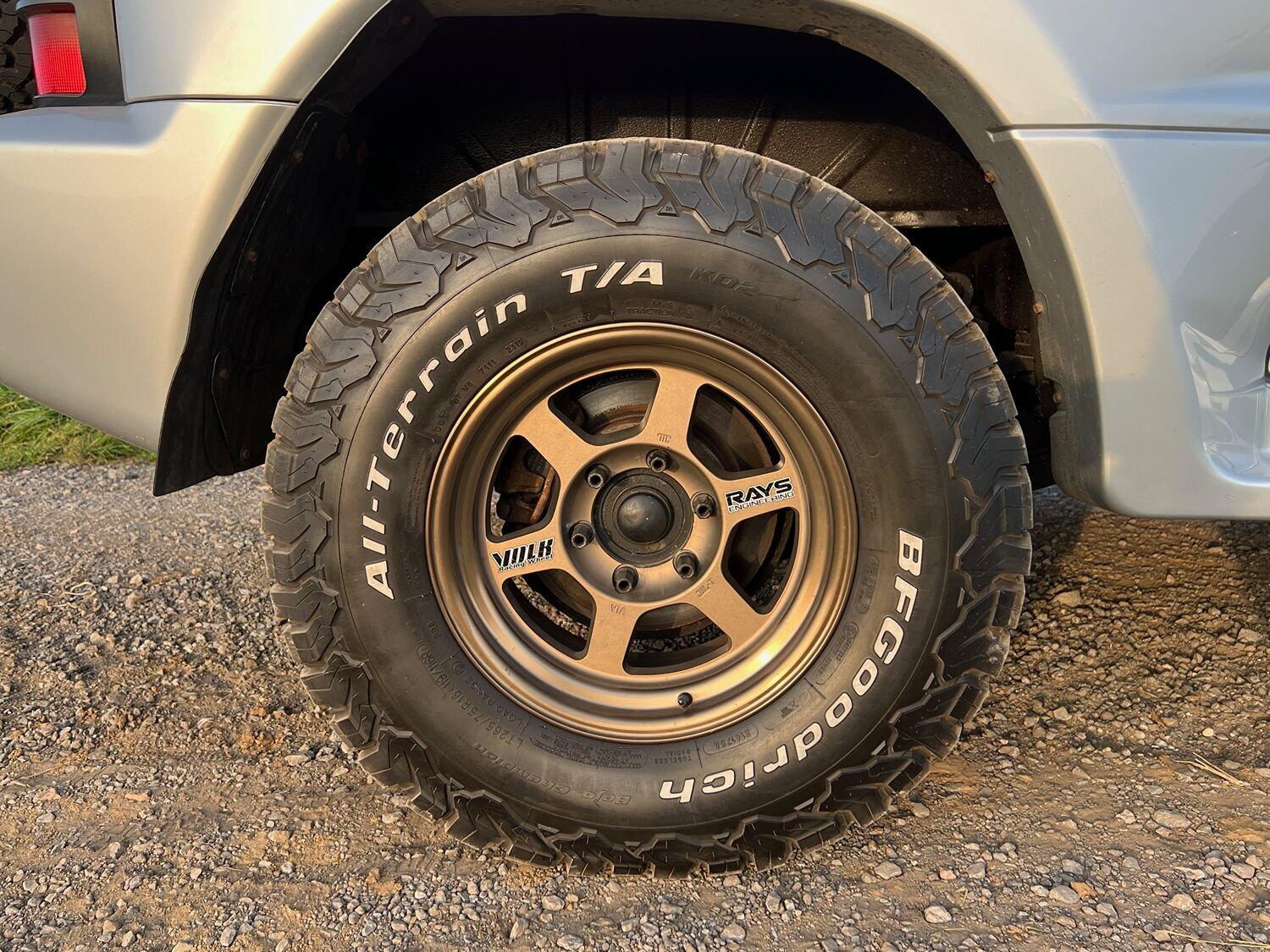The metallic silver exterior is in pretty much immaculate condition, with the wild factory body kit all present and correct. It has a super cool set of bronze coloured Rays alloys, which are very hard to find and valuable in their own right. They are shod with BF Goodrich tyres with excellent tread, and look absolutely bang on, in our opinion. A useful tow bar has also been fitted.