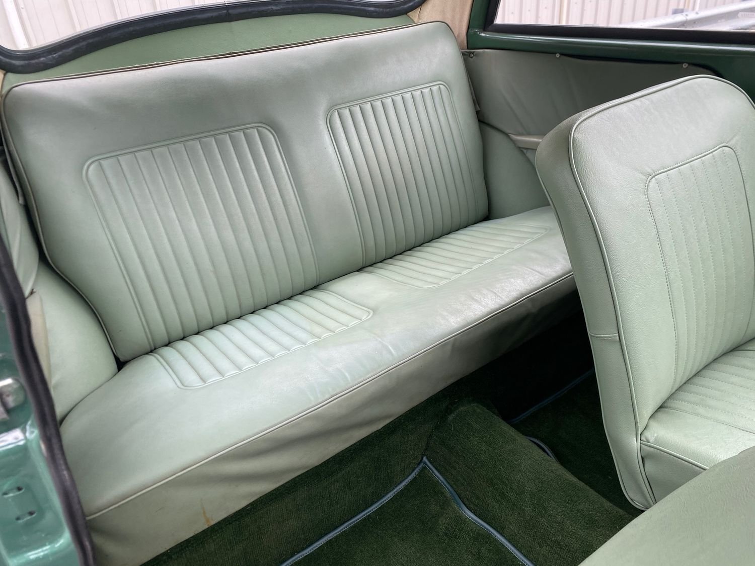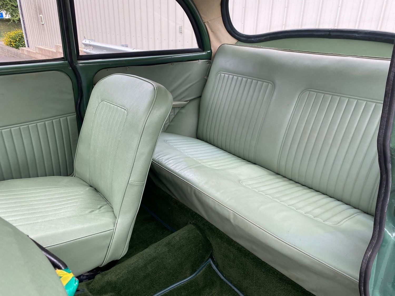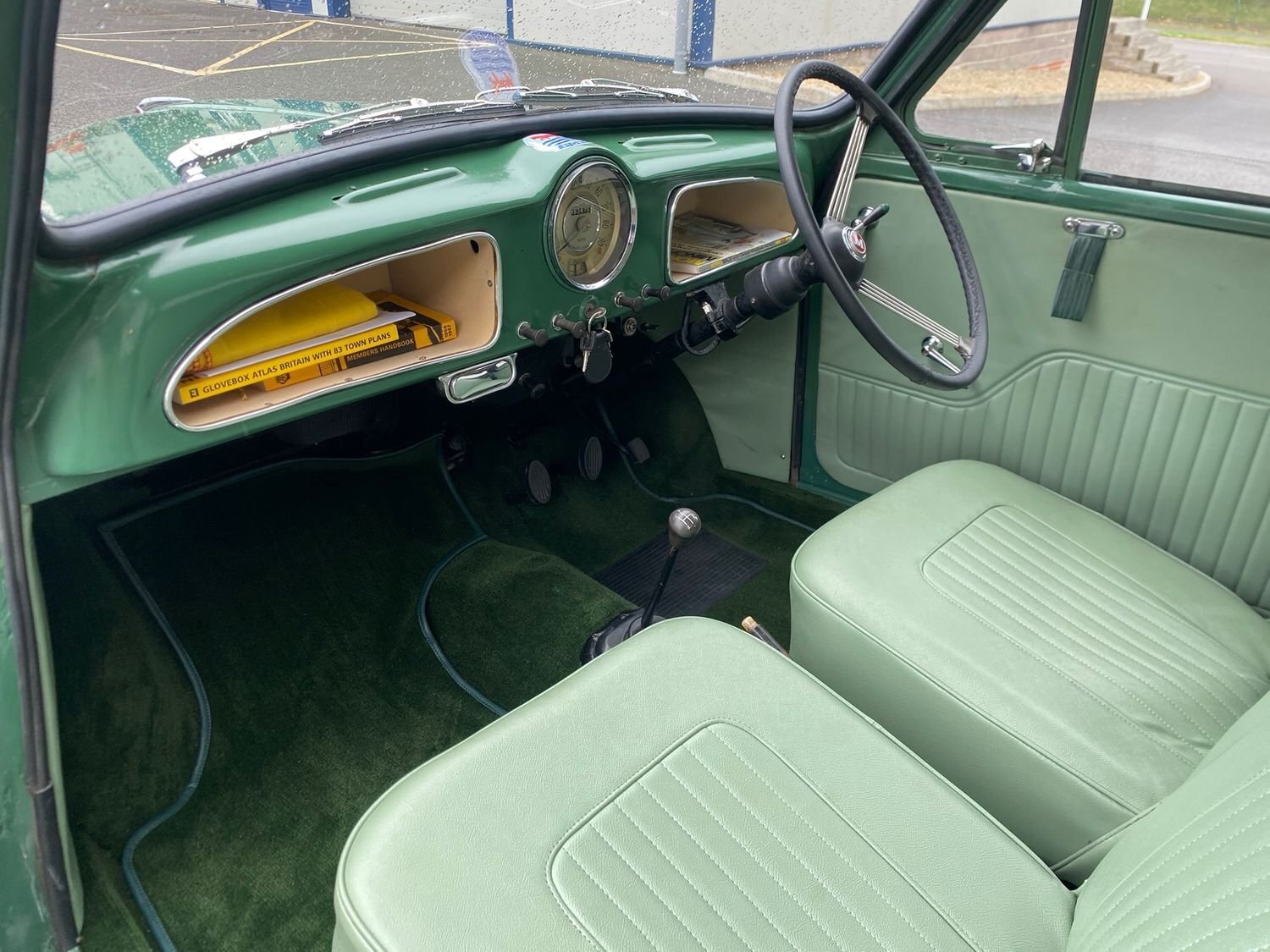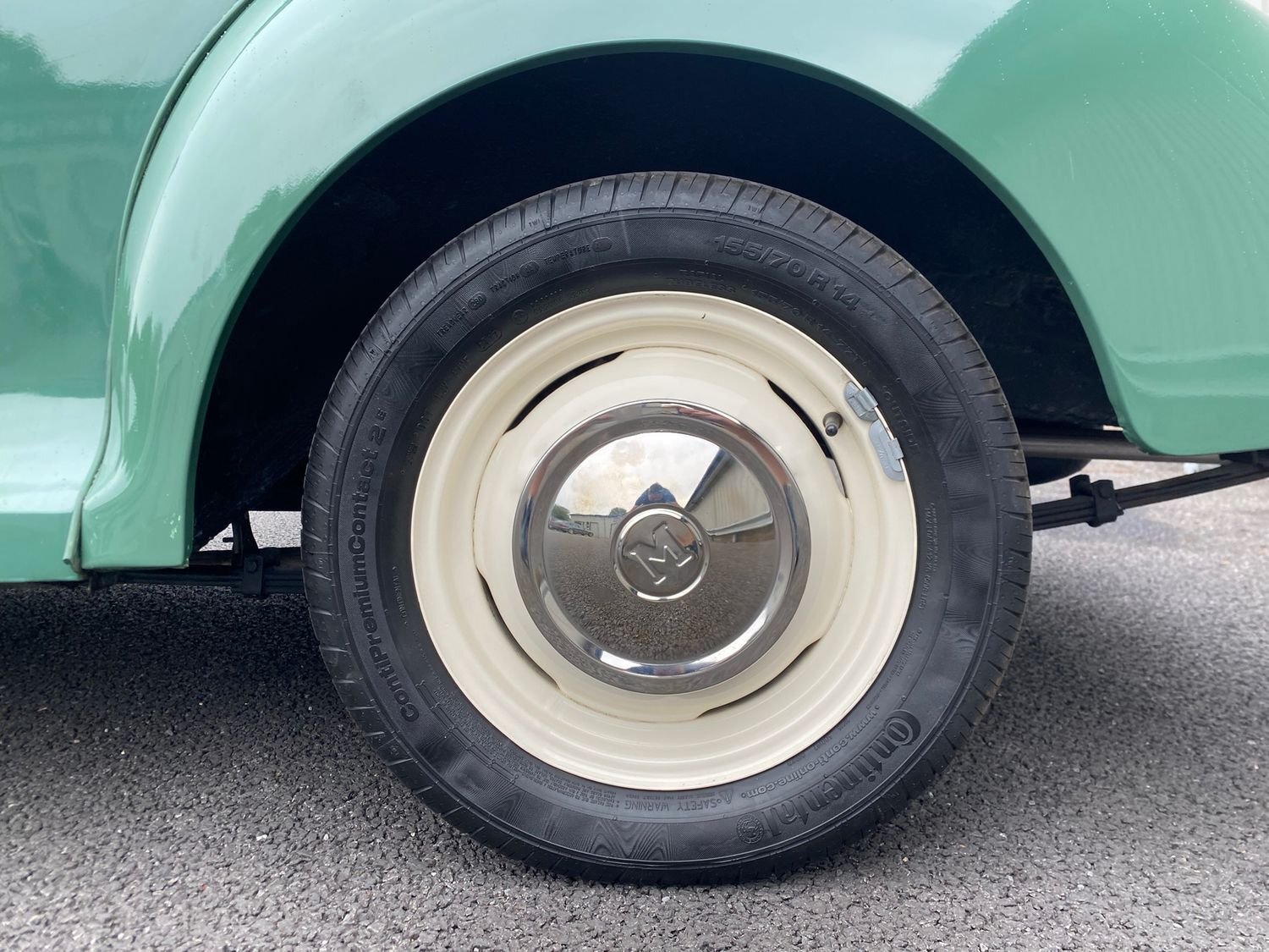 Hello and welcome to the sale of this fabulous Morris Minor. It was first registered in January 1964 and still wears it's original dateless Somerset registration number. It now has the benefit of being tax and MOT exempt. There is a large history file documenting extensive recent expenditure to the tune of several thousand pounds for mechanical, body and trim improvements. Notable new items include full exterior chrome, unleaded cylinder head, electronic ignition, coil, radiator, fuel pump, brake master cylinder, wheel cylinders and brake linings. It has also just been upgraded with a brand new brake servo giving welcome braking assistance and ensuring the car pulls up straight and true. All five wheels have been refurbished and shod with five premium continental tyres. The engine starts and runs perfectly with good power, delivering surprisingly zippy performance and that distinctive moggy sound! It must be mentioned that the gearbox on this car is particularly sweet with a very precise change and no crunching. The suspension and steering are tight providing a very pleasant driving experience. The Almond green paintwork is in lovely order, and whilst not to concourse standard is looking fresh with no damage or causes for concern. The shell itself has of course had work over the decades to keep the old girl on the road, no doubt with repairs as necessary and a thorough undersealing in more recent years still giving a presentable finish today. Another highlight is the beautiful green interior, which benefits from freshly trimmed seats and carpets, and features many of the lovely details of the older cars including the pretty cream coloured speedo on the earlier style dash and the pull-starter button. To sum up this is a very attractive, presentable and authentic survivor car, that whilst has not undergone a full nut and bolt restoration is nonetheless looking, running and driving very well due to the care and expenditure that has clearly been lavished upon it, and I am sure the new owner will be very pleased.
