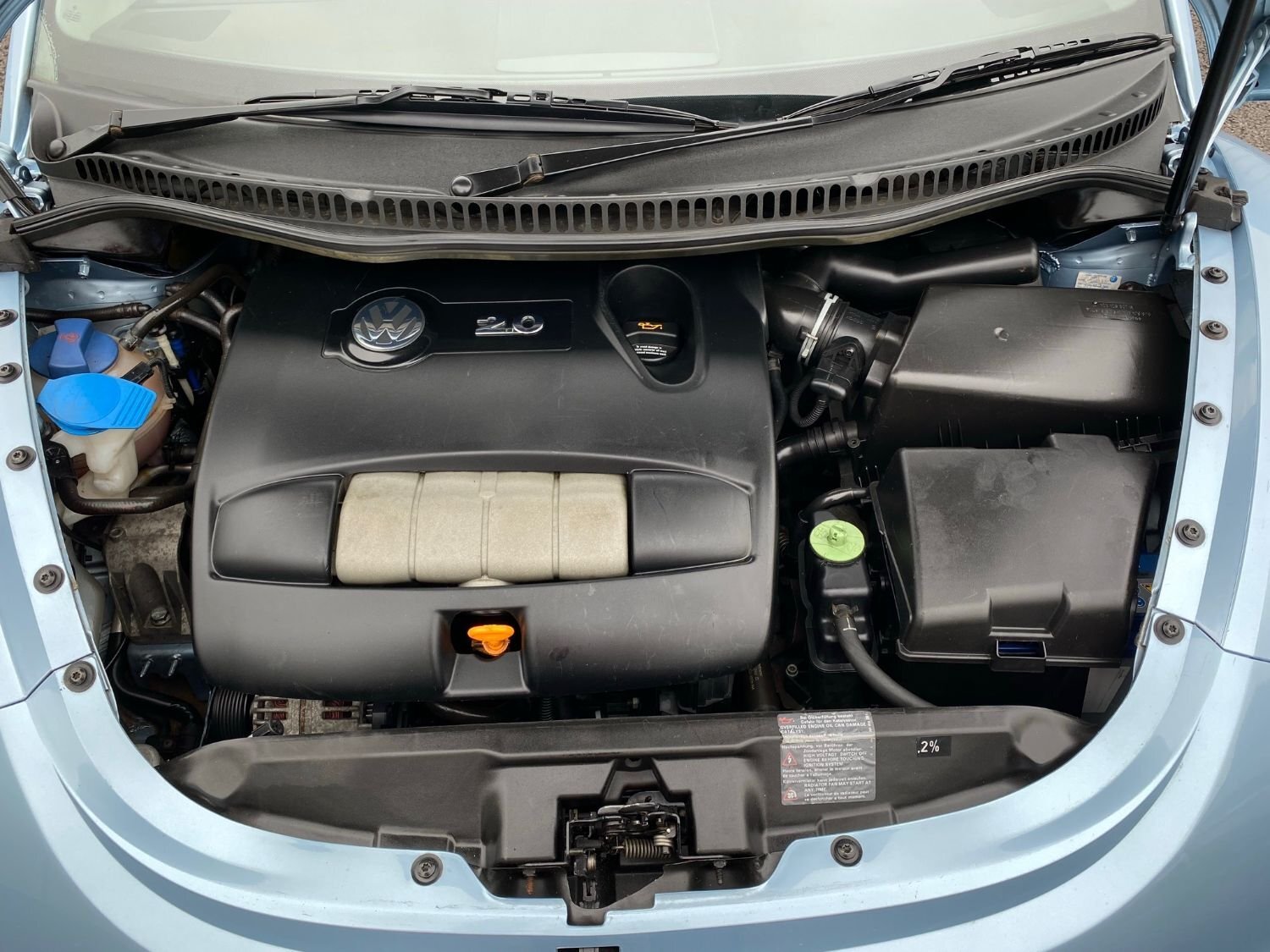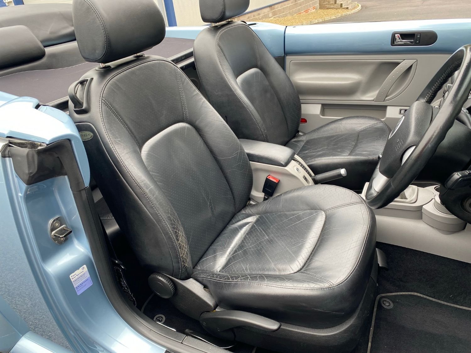 Hello and welcome to the sale of this stunning VW Beetle cabriolet. This car has covered an unbelievably low 25k miles from new, with just two private owners. It comes with service history and I have just had the cambelt replaced. The exterior is in excellent condition for the age with none of the scuffs or scrapes often associated with this model. Likewise there is no rust bubbles or dents and the very attractive light metallic blue paintwork retains a deep shine. The electrically operated roof is also in excellent condition with no rips or tears. It comes complete with the original vinyl tonneau cover and wind deflector. I have also just had all four wheels professionally refurbished to ensure the car looks it's very best. The rare black heated leather interior is also in excellent condition with very little wear and everything functioning as it should, including ice cold air conditioning. The simple 2.0 8 valve petrol engine pulls as it should through the 5 speed manual gearbox. The car starts, runs and drives very well indeed with no apparent faults. We even have the original bill of sale for the car, showing it to be in excess of twenty thousand pounds when new, a lot of money in 2004! To sum up this is probably the lowest mileage example available of this appreciating and fun future classic, in the best possible condition and I am sure the new owner will be very pleased.