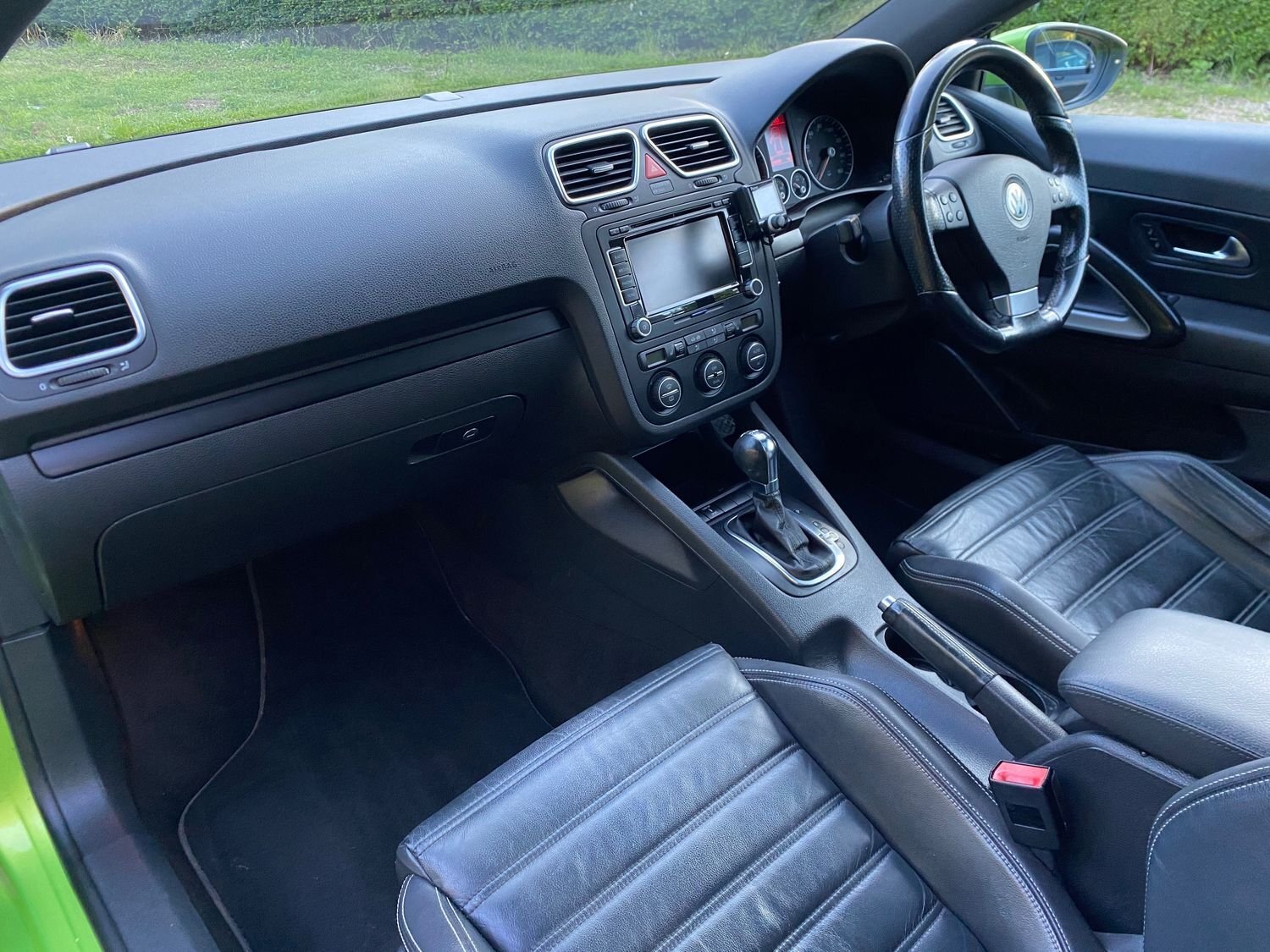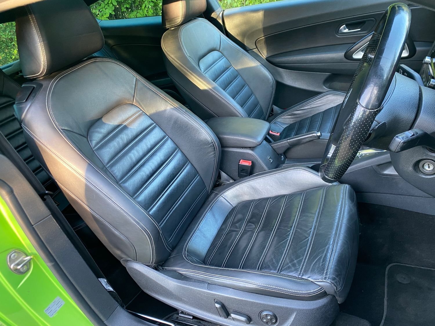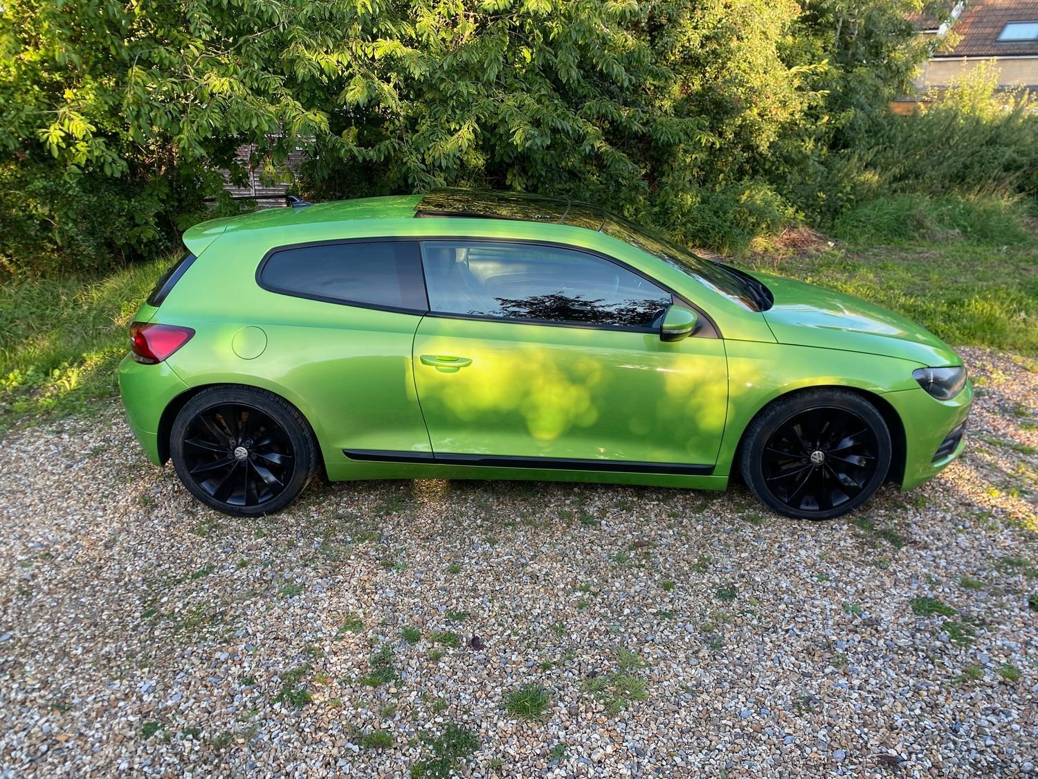 Hello and welcome to the sale of this superb VW Scirrocco. It has had just 3 owners from new, has covered 124k miles and has a full service history. It has also just had a fresh service including the important DSG gearbox oil change. Viper green is in my opinion the best colour for the Scirrocco, it is a wicked colour that really pops in the sunshine and shows off the design of the car well. The paintwork is in great condition for the age and mileage with just a few tiny marks here and there as you would expect. The panoramic glass sunroof, black alloy wheels and black badging give a great contrast. The black heated leather interior would have been an expensive option when new, and is still in great condition today with no rips or tears and very little wear. Additional factory specification also includes parking sensors and electrically adjustable drivers seat. It also has electric windows and mirrors, and air conditioning, all in good working order. The 2.0 turbo petrol engine produces 200bhp and puts it down swiftly through the ultra quick DSG semi auto gearbox. You can drive it in full auto mode or use the steering wheel paddles for an even more sporting drive. It drives very nicely on the road with no knocks or bangs, it boosts smoothly and progressively, and pulls up square under braking. I believe the car has been slightly lowered with a spring kit, giving it slightly tighter handling and an improved look. To sum up, this is a very well looked after example, in a fantastic colour and a very extensive specification. It is ready to drive away and I am sure the new owner will be very pleased. Part exchange considered, Nationwide delivery available.