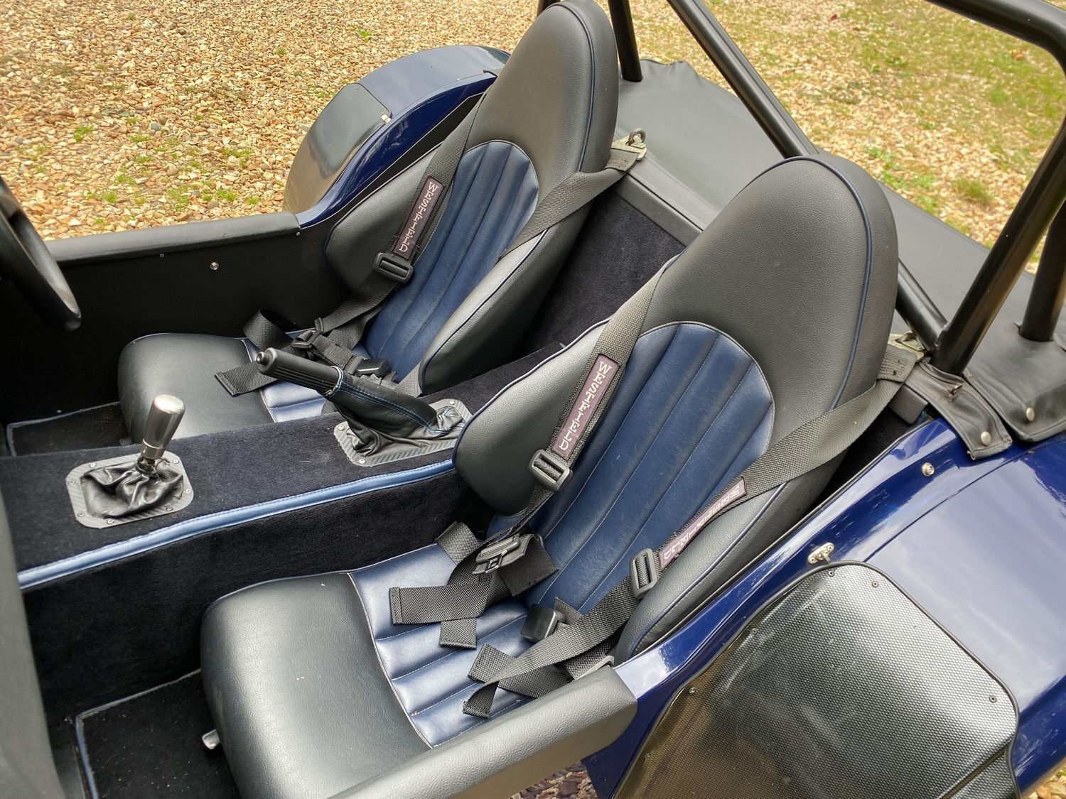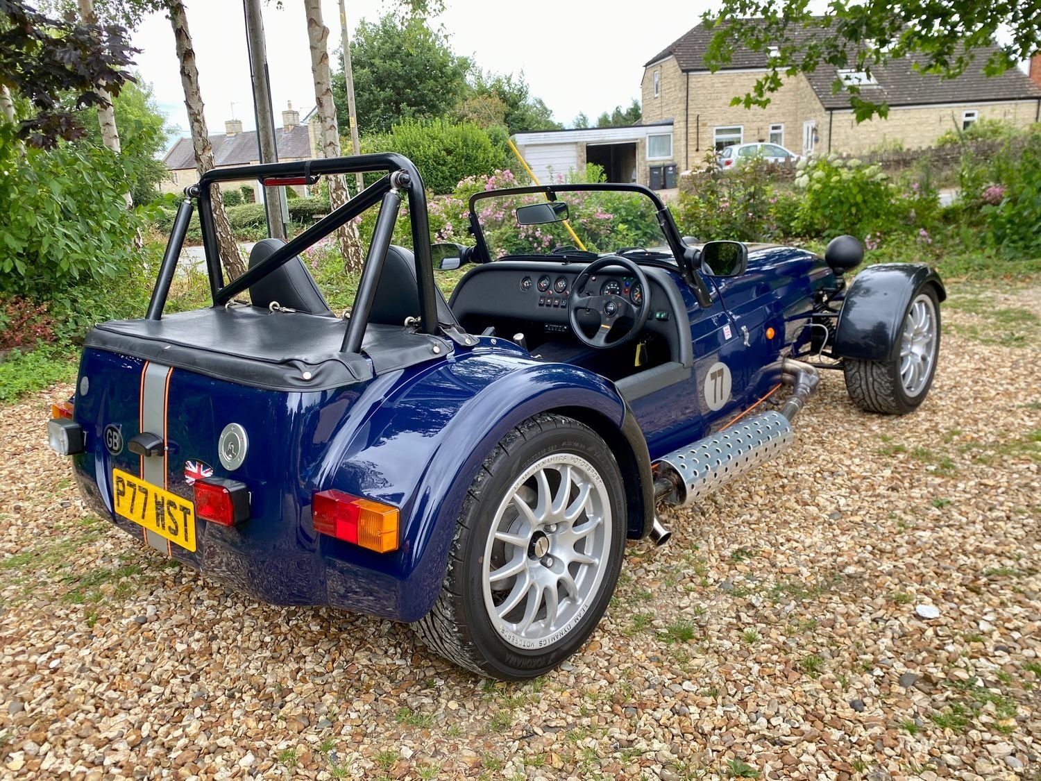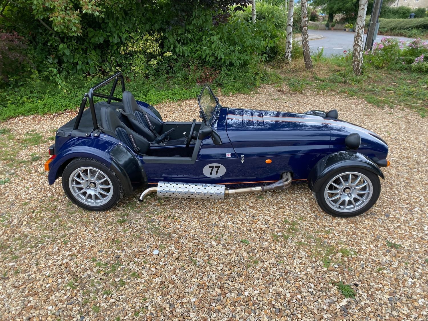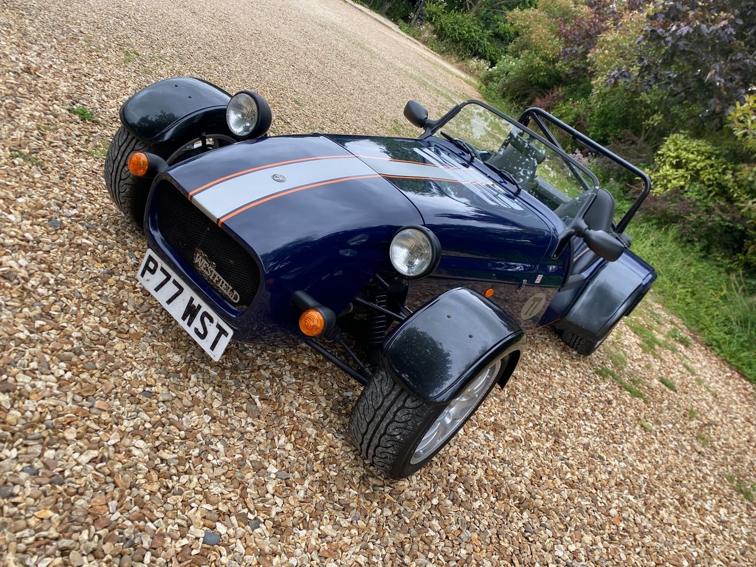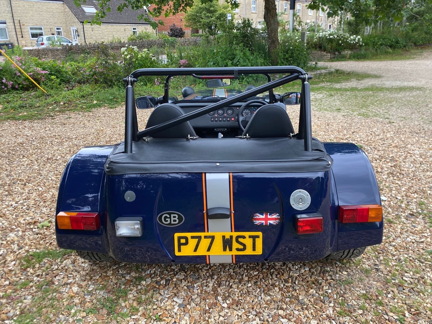 Hello and welcome to the sale of this superb Westfield Sport. It has had just three previous keepers, and has covered just 14k miles. It comes with a comprehensive history file, including spec sheets and workshop manuals. It is a 2007 registered car, currently wearing the private plate 'P77 WST', which can be included in the sale if desired. It would revert to an '07' reg, and is obviously not a Q plate as many usually are. Whilst not a hugely powerful or high spec competition vehicle, this has been very thoughtfully put together car which provides enormous pleasure for fast road use or summer cruising. The 1600cc Ford Sigma engine is a modern and well regarded power unit, pushing out in the region of 140bhp through the 5 speed manual gearbox. It sounds great through the side exit sports exhaust, without being overpowering. It will also return great economy, and is simple to run and maintain with great parts availability. Brakes are the well regarded 'Hi-Spec' version, providing good stopping power. The suspension is well set up with minimum roll through the corners whilst maintaining excellent ride quality and no bottoming out. The rear suspension is independent. The silver Team Dynamics alloy wheels are in immaculate condition with premium Yokohama tyres all round, and comes with a full size spare wheel and carrier, not currently fitted but included. The carbon fibre style arches look the part, and the attractive exterior colour combination of blue with silver and orange pin stripes is complimented by the matching dark blue and black leather interior trim, which is all in great condition and very neatly finished. Additional gauges and warning lights for coolant, battery and oil etc have been fitted to keep the driver informed. It has a red starter button on the dash, and a cool Momo steering wheel. It has the much improved 'RAC' style roll bar / hoop, which not only looks much better but provides far better protection for the occupants. It has four point harnesses fitted for both driver and passenger. This is the widebody version, giving increased levels of driver comfort, ideal if like me you are of larger proportions! It comes with full wet weather gear including roof and doors, all in great condition with no rips or tears. It also has a heated front screen, which is very handy to prevent the screen misting up, along with fully functioning wipers and screenwashers. It starts, runs and drives very well indeed, extremely compliant on the road with no knocks or bangs, it accelerates hard through the gears and pulls up square under braking. It is capable of satisfyingly brisk and enjoyable performance without the quite frankly sheer terror of some of the more powerful Westfields and Caterhams that I have been in! To sum up, this is an extremely well thought out, nicely put together Westfield, with a great configuration and powertrain. It is in fantastic condition throughout and is ready for the next owner to enjoy.