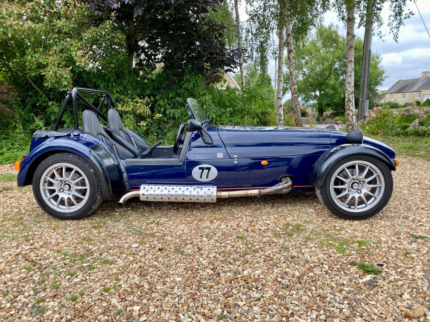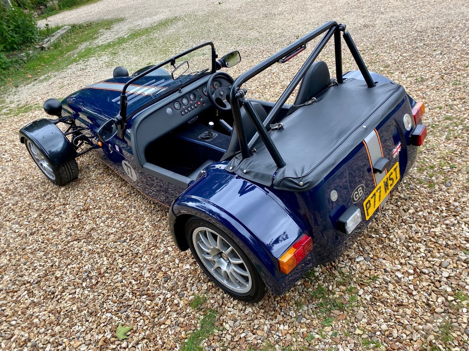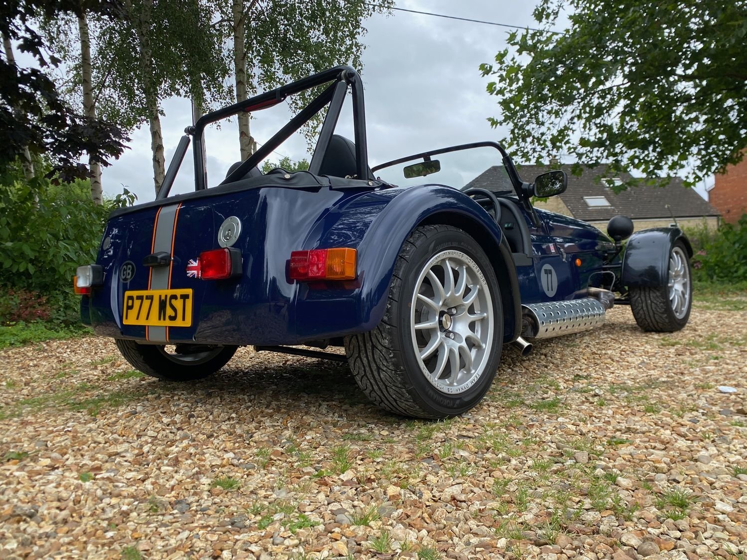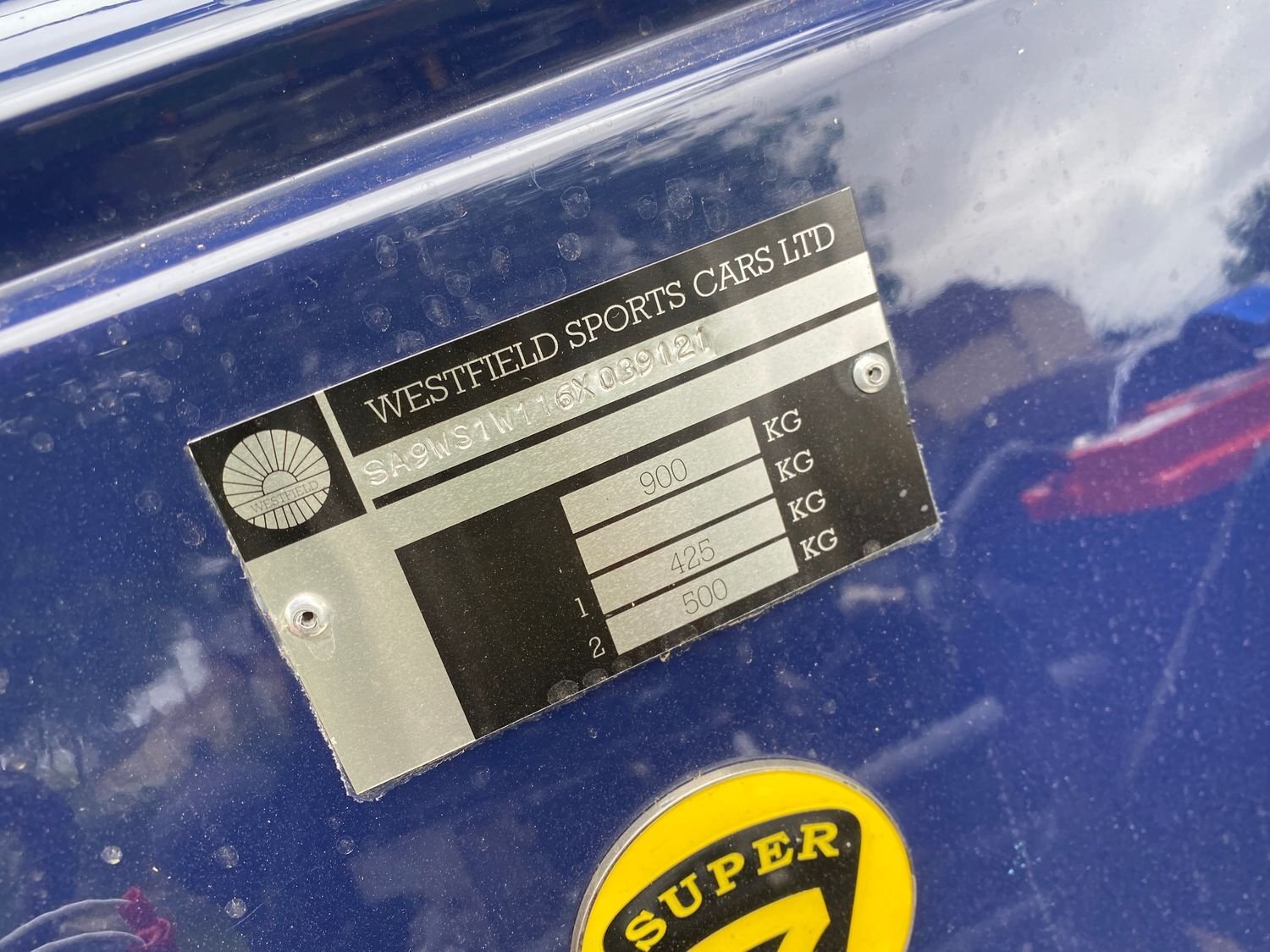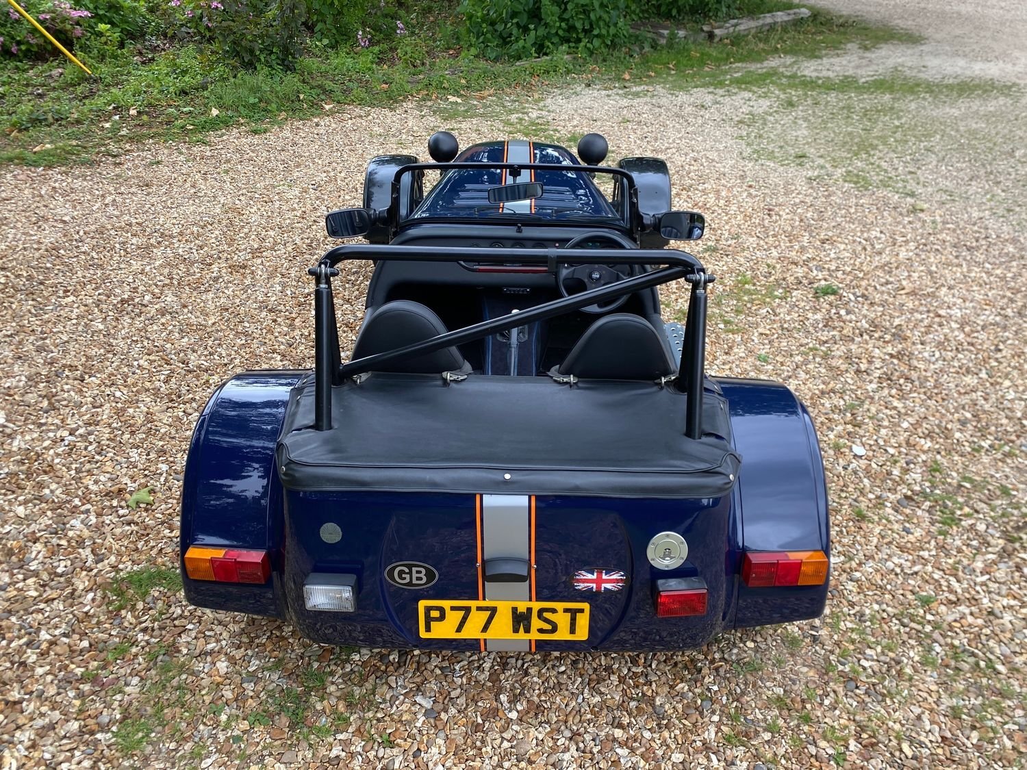 Hello and welcome to the sale of this superb Westfield Sport. It has had just three previous keepers, and has covered just 14k miles. It comes with a comprehensive history file, including spec sheets and workshop manuals. It is a 2007 registered car, currently wearing the private plate 'P77 WST', which can be included in the sale if desired. It would revert to an '07' reg, and is obviously not a Q plate as many usually are. Whilst not a hugely powerful or high spec competition vehicle, this has been very thoughtfully put together car which provides enormous pleasure for fast road use or summer cruising. The 1600cc Ford Sigma engine is a modern and well regarded power unit, pushing out in the region of 140bhp through the 5 speed manual gearbox. It sounds great through the side exit sports exhaust, without being overpowering. It will also return great economy, and is simple to run and maintain with great parts availability. Brakes are the well regarded 'Hi-Spec' version, providing good stopping power. The suspension is well set up with minimum roll through the corners whilst maintaining excellent ride quality and no bottoming out. The rear suspension is independent. The silver Team Dynamics alloy wheels are in immaculate condition with premium Yokohama tyres all round, and comes with a full size spare wheel and carrier, not currently fitted but included. The carbon fibre style arches look the part, and the attractive exterior colour combination of blue with silver and orange pin stripes is complimented by the matching dark blue and black leather interior trim, which is all in great condition and very neatly finished. Additional gauges and warning lights for coolant, battery and oil etc have been fitted to keep the driver informed. It has a red starter button on the dash, and a cool Momo steering wheel. It has the much improved 'RAC' style roll bar / hoop, which not only looks much better but provides far better protection for the occupants. It has four point harnesses fitted for both driver and passenger. This is the widebody version, giving increased levels of driver comfort, ideal if like me you are of larger proportions! It comes with full wet weather gear including roof and doors, all in great condition with no rips or tears. It also has a heated front screen, which is very handy to prevent the screen misting up, along with fully functioning wipers and screenwashers. It starts, runs and drives very well indeed, extremely compliant on the road with no knocks or bangs, it accelerates hard through the gears and pulls up square under braking. It is capable of satisfyingly brisk and enjoyable performance without the quite frankly sheer terror of some of the more powerful Westfields and Caterhams that I have been in! To sum up, this is an extremely well thought out, nicely put together Westfield, with a great configuration and powertrain. It is in fantastic condition throughout and is ready for the next owner to enjoy.
