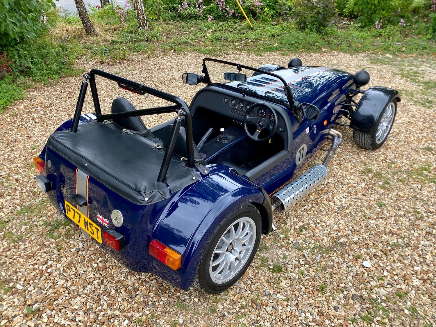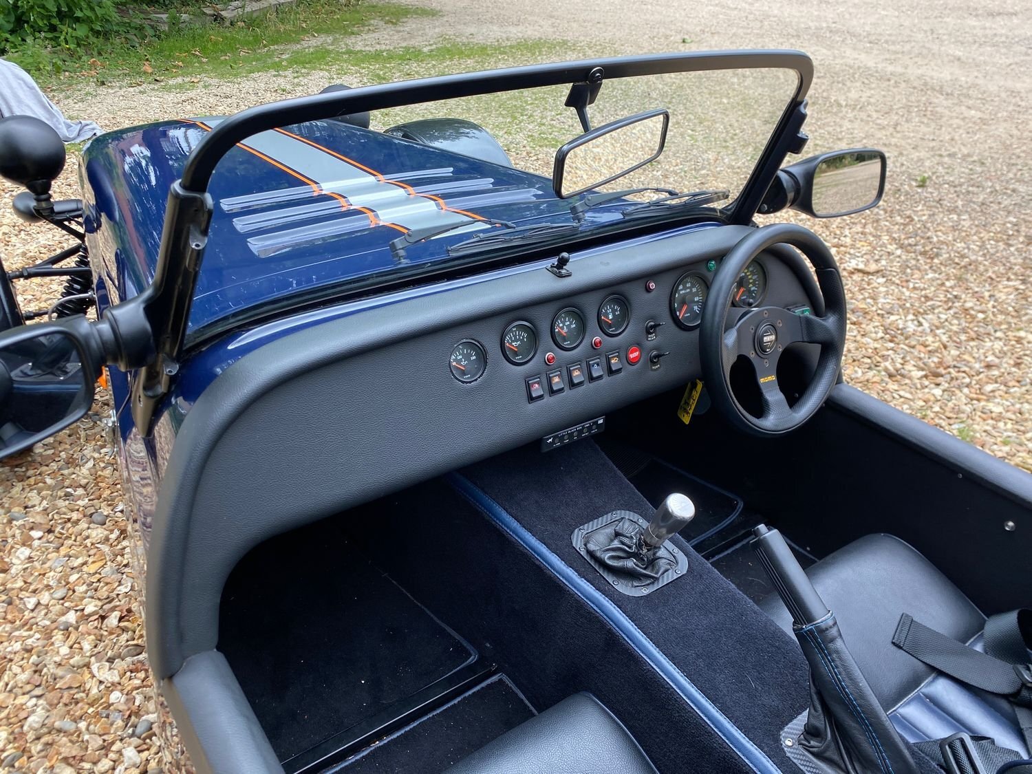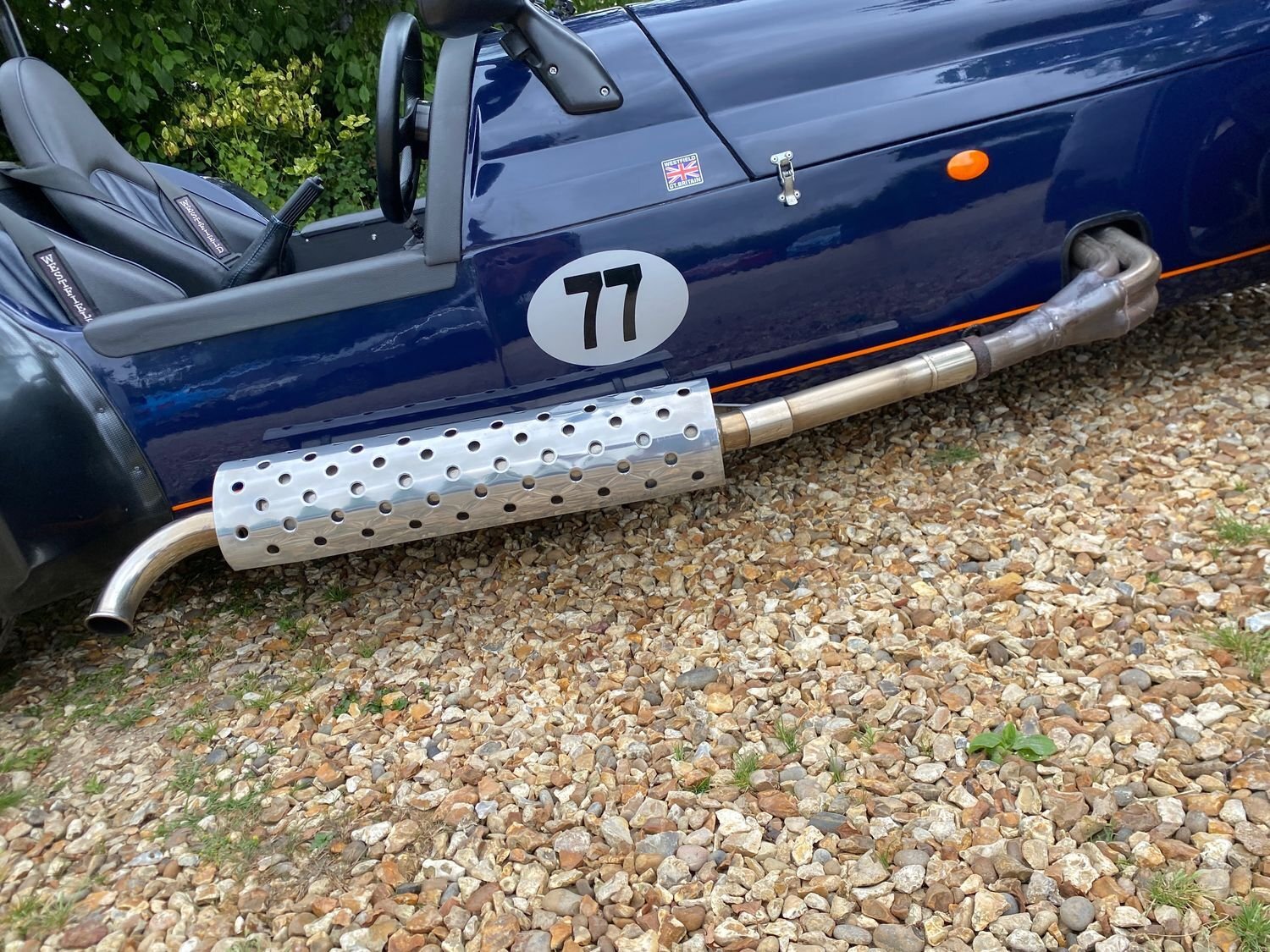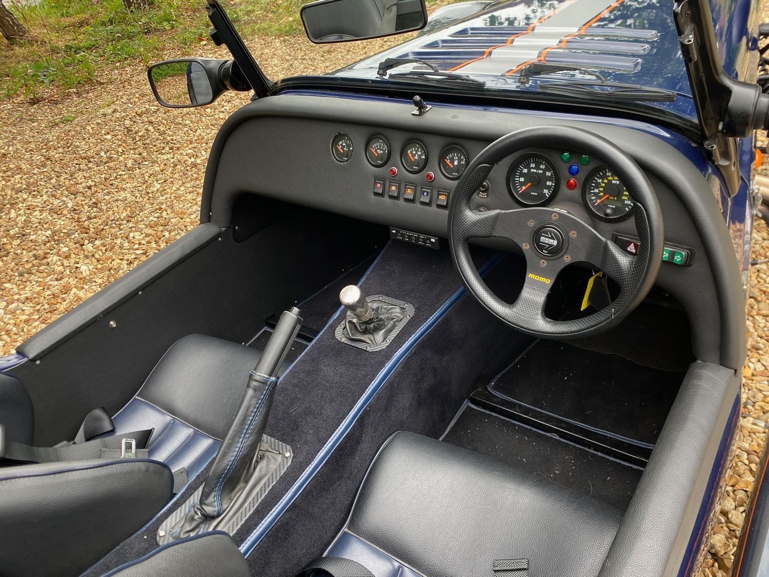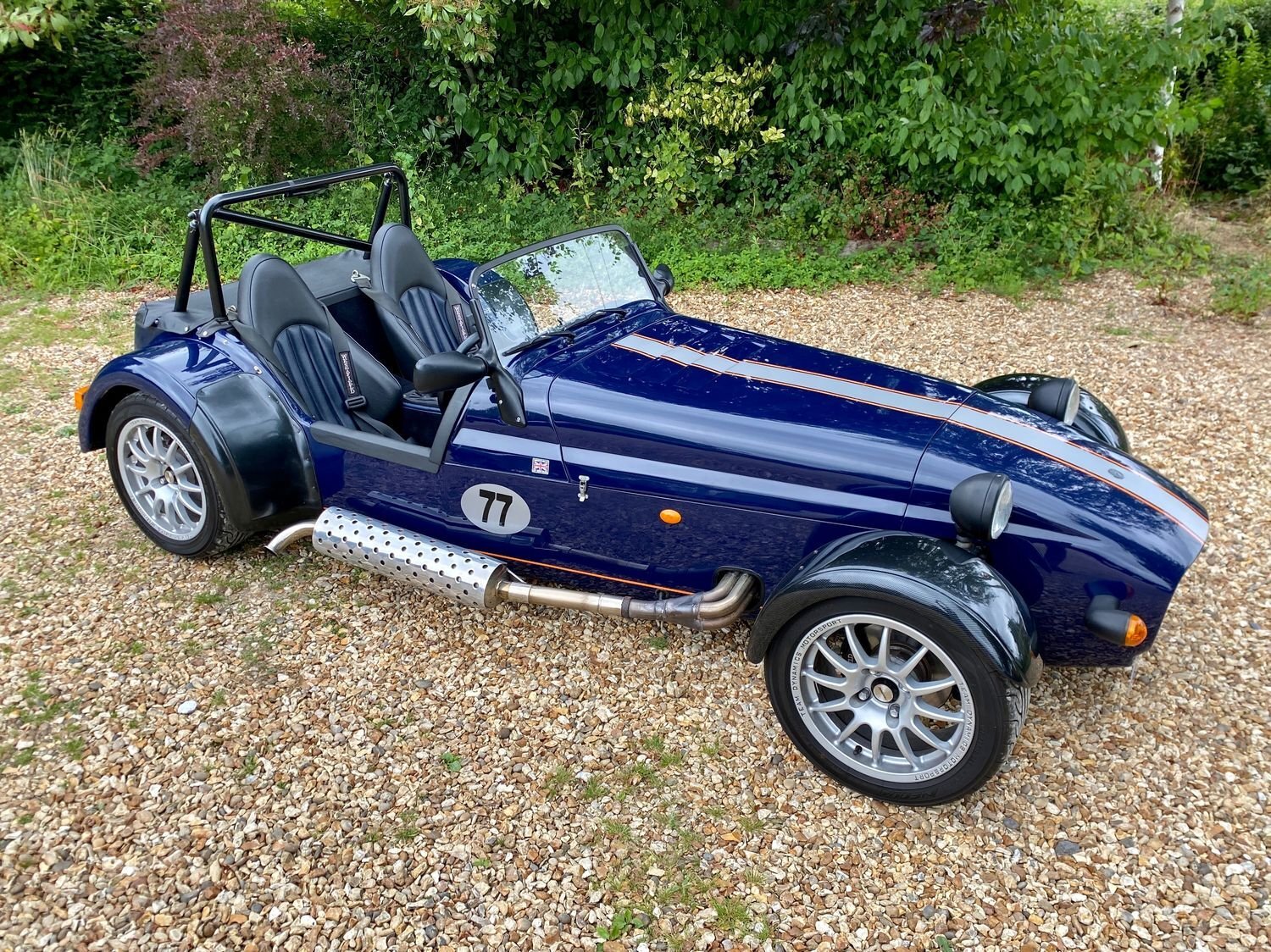 Hello and welcome to the sale of this superb Westfield Sport. It has had just three previous keepers, and has covered just 14k miles. It comes with a comprehensive history file, including spec sheets and workshop manuals. It is a 2007 registered car, currently wearing the private plate 'P77 WST', which can be included in the sale if desired. It would revert to an '07' reg, and is obviously not a Q plate as many usually are. Whilst not a hugely powerful or high spec competition vehicle, this has been very thoughtfully put together car which provides enormous pleasure for fast road use or summer cruising. The 1600cc Ford Sigma engine is a modern and well regarded power unit, pushing out in the region of 140bhp through the 5 speed manual gearbox. It sounds great through the side exit sports exhaust, without being overpowering. It will also return great economy, and is simple to run and maintain with great parts availability. Brakes are the well regarded 'Hi-Spec' version, providing good stopping power. The suspension is well set up with minimum roll through the corners whilst maintaining excellent ride quality and no bottoming out. The rear suspension is independent. The silver Team Dynamics alloy wheels are in immaculate condition with premium Yokohama tyres all round, and comes with a full size spare wheel and carrier, not currently fitted but included. The carbon fibre style arches look the part, and the attractive exterior colour combination of blue with silver and orange pin stripes is complimented by the matching dark blue and black leather interior trim, which is all in great condition and very neatly finished. Additional gauges and warning lights for coolant, battery and oil etc have been fitted to keep the driver informed. It has a red starter button on the dash, and a cool Momo steering wheel. It has the much improved 'RAC' style roll bar / hoop, which not only looks much better but provides far better protection for the occupants. It has four point harnesses fitted for both driver and passenger. This is the widebody version, giving increased levels of driver comfort, ideal if like me you are of larger proportions! It comes with full wet weather gear including roof and doors, all in great condition with no rips or tears. It also has a heated front screen, which is very handy to prevent the screen misting up, along with fully functioning wipers and screenwashers. It starts, runs and drives very well indeed, extremely compliant on the road with no knocks or bangs, it accelerates hard through the gears and pulls up square under braking. It is capable of satisfyingly brisk and enjoyable performance without the quite frankly sheer terror of some of the more powerful Westfields and Caterhams that I have been in! To sum up, this is an extremely well thought out, nicely put together Westfield, with a great configuration and powertrain. It is in fantastic condition throughout and is ready for the next owner to enjoy.