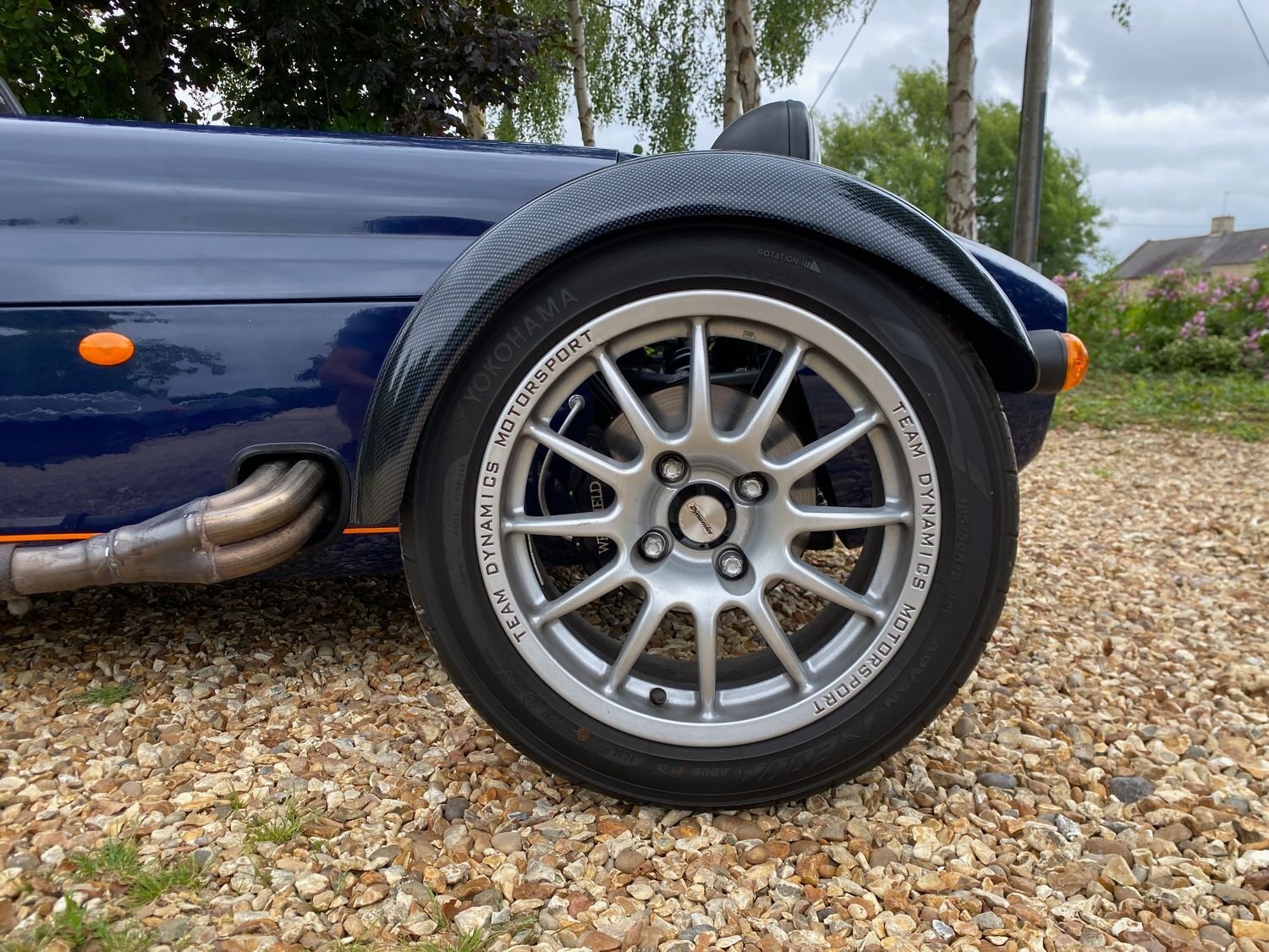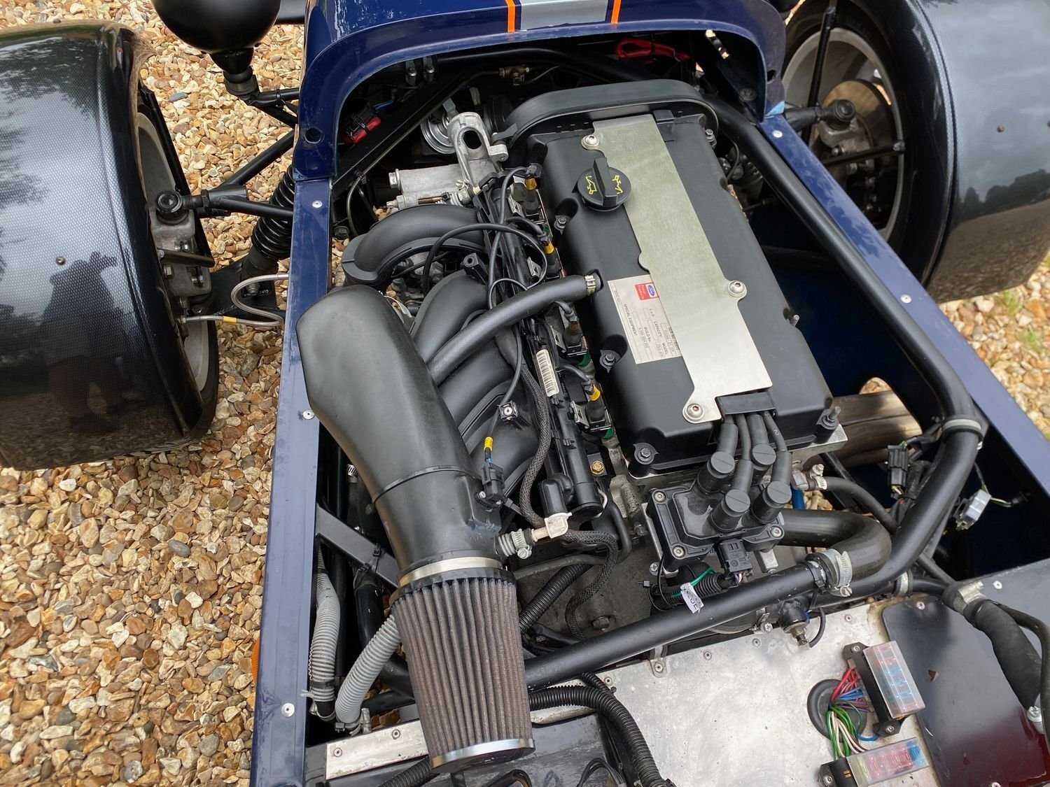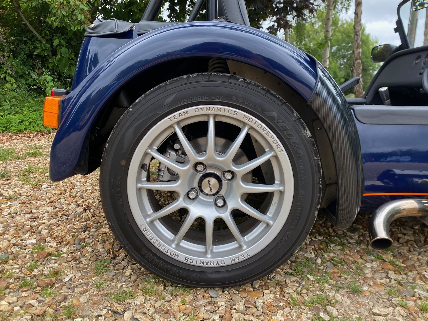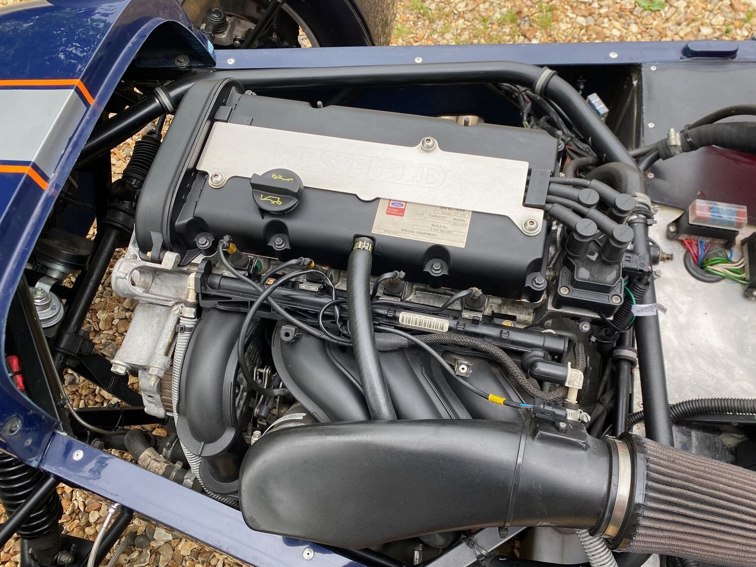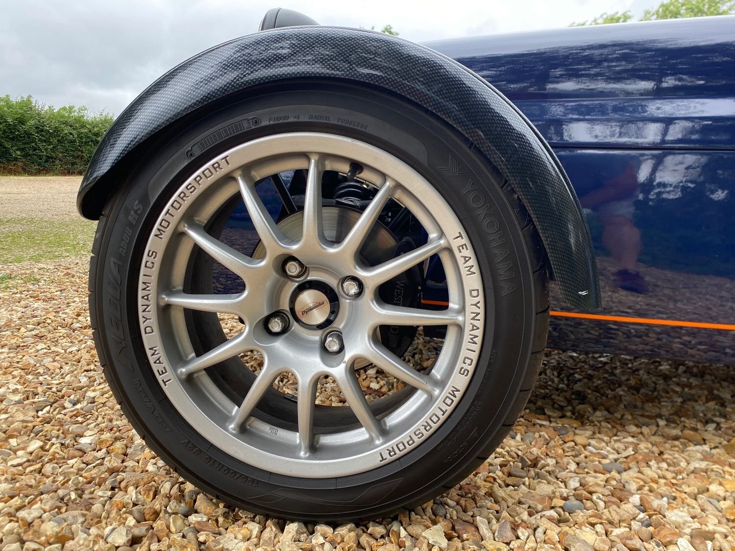 Hello and welcome to the sale of this superb Westfield Sport. It has had just three previous keepers, and has covered just 14k miles. It comes with a comprehensive history file, including spec sheets and workshop manuals. It is a 2007 registered car, currently wearing the private plate 'P77 WST', which can be included in the sale if desired. It would revert to an '07' reg, and is obviously not a Q plate as many usually are. Whilst not a hugely powerful or high spec competition vehicle, this has been very thoughtfully put together car which provides enormous pleasure for fast road use or summer cruising. The 1600cc Ford Sigma engine is a modern and well regarded power unit, pushing out in the region of 140bhp through the 5 speed manual gearbox. It sounds great through the side exit sports exhaust, without being overpowering. It will also return great economy, and is simple to run and maintain with great parts availability. Brakes are the well regarded 'Hi-Spec' version, providing good stopping power. The suspension is well set up with minimum roll through the corners whilst maintaining excellent ride quality and no bottoming out. The rear suspension is independent. The silver Team Dynamics alloy wheels are in immaculate condition with premium Yokohama tyres all round, and comes with a full size spare wheel and carrier, not currently fitted but included. The carbon fibre style arches look the part, and the attractive exterior colour combination of blue with silver and orange pin stripes is complimented by the matching dark blue and black leather interior trim, which is all in great condition and very neatly finished. Additional gauges and warning lights for coolant, battery and oil etc have been fitted to keep the driver informed. It has a red starter button on the dash, and a cool Momo steering wheel. It has the much improved 'RAC' style roll bar / hoop, which not only looks much better but provides far better protection for the occupants. It has four point harnesses fitted for both driver and passenger. This is the widebody version, giving increased levels of driver comfort, ideal if like me you are of larger proportions! It comes with full wet weather gear including roof and doors, all in great condition with no rips or tears. It also has a heated front screen, which is very handy to prevent the screen misting up, along with fully functioning wipers and screenwashers. It starts, runs and drives very well indeed, extremely compliant on the road with no knocks or bangs, it accelerates hard through the gears and pulls up square under braking. It is capable of satisfyingly brisk and enjoyable performance without the quite frankly sheer terror of some of the more powerful Westfields and Caterhams that I have been in! To sum up, this is an extremely well thought out, nicely put together Westfield, with a great configuration and powertrain. It is in fantastic condition throughout and is ready for the next owner to enjoy.